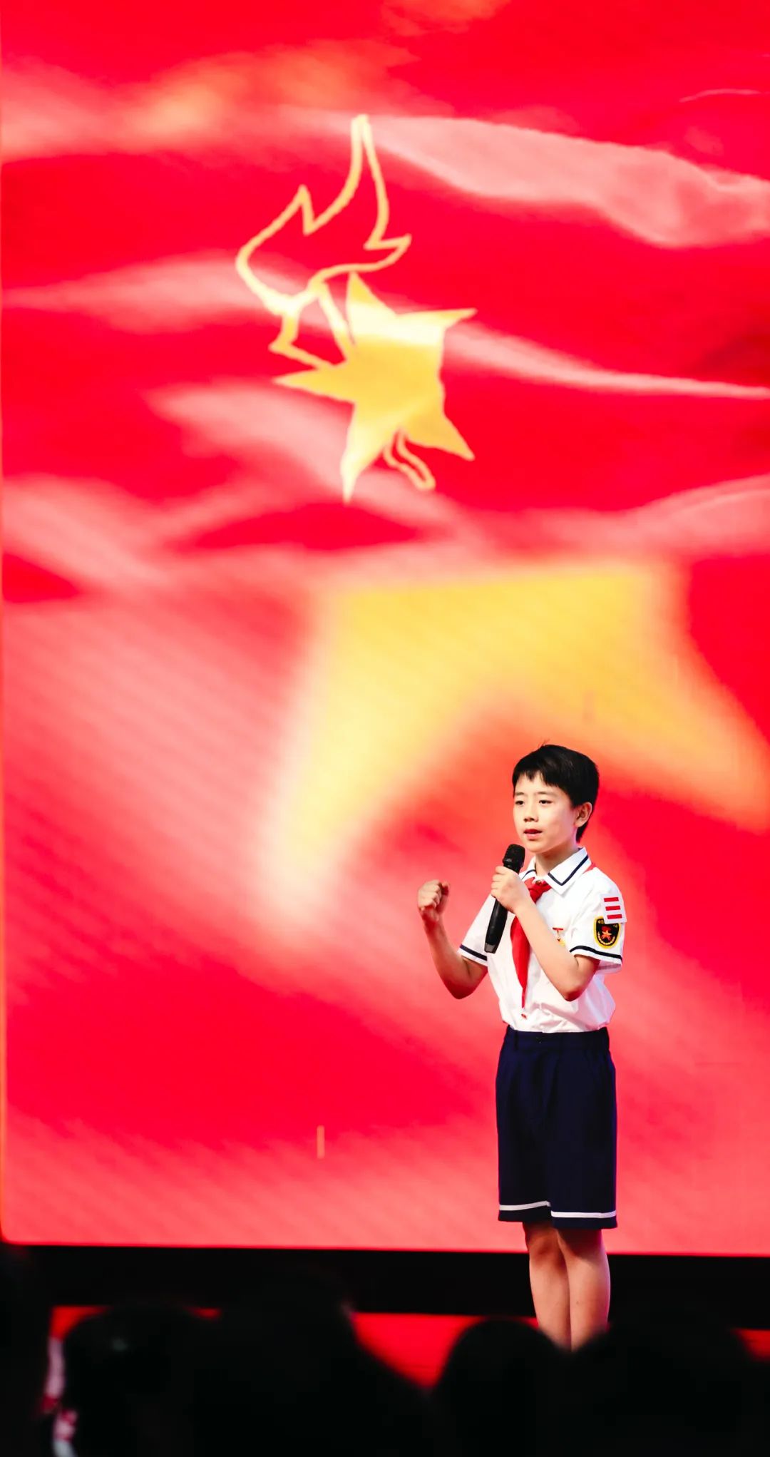 红领巾是荣光、是责任、是一种荣耀的传递,也是一份责任的嘱托。五年级大队委李扶摇上台发言,向一年级同学分享了自己作为一名少先队员的光荣历程。