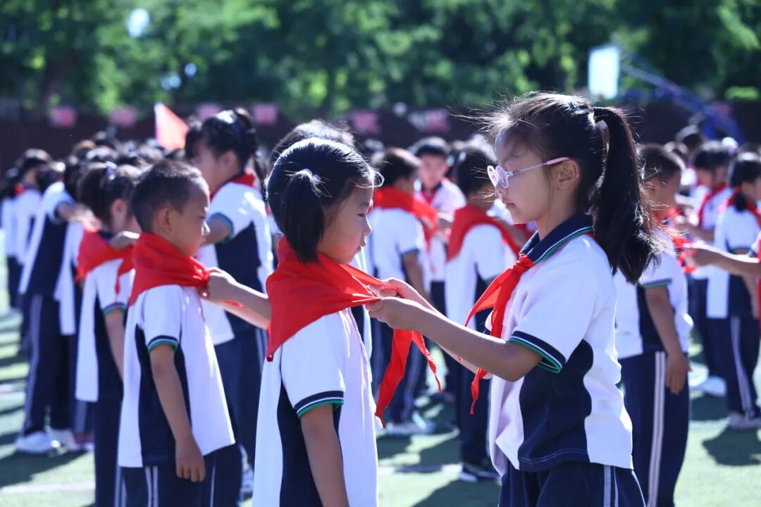 本次活动,壮大了少先队的队伍,使少先队员们懂得了肩负光荣使命的责任。愿小队员们在星星火炬的指引下,茁壮成长,争做星星火炬下最耀眼的逐梦人。