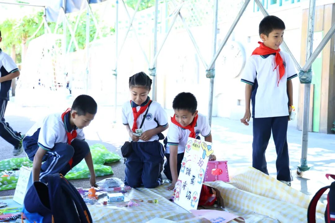 文艺演出结束后,跳蚤市场正式开市。孩子们纷纷拿出自己的闲置物品,摆起了小摊。他们吆喝着、推销着,与顾客讨价还价,努力让自己的商品卖出去。有的孩子还别出心裁地设计了海报和宣传语,吸引顾客的注意。整个跳蚤市场热闹非凡,孩子们在买卖中体验到了分享和交流的乐趣,也学会了理财和节约资源的重要性。