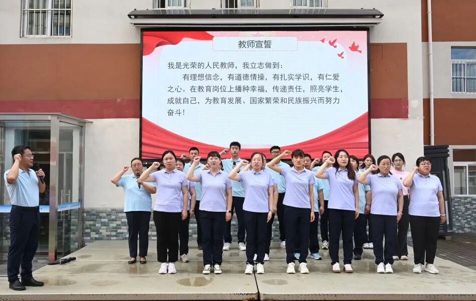 全体教师庄严宣誓:承担责任使命,争做“四有”教师,为国家繁荣和民族振兴而努力奋斗。