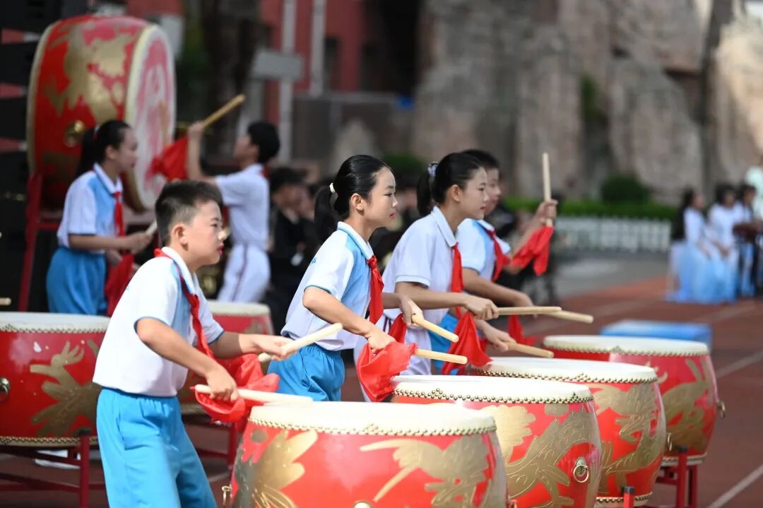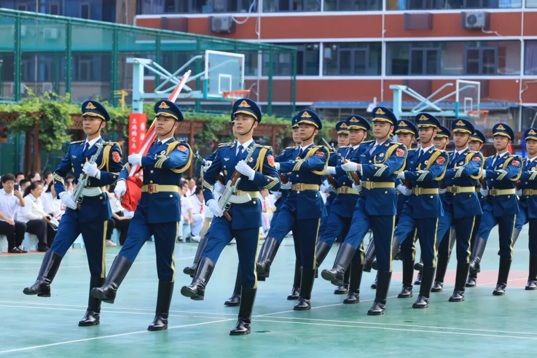 在慷慨激昂的鼓点中,“传承赋能,赓续荣光”主题开学典礼活动拉开序幕。催人奋进的战鼓已经擂响,灿若云霞的旗帜迎风飘扬。小鼓手们精神抖擞,身姿如松,气势如虹,奏响新学期的动人乐章。九年级44名旗手高举红旗,昂首阔步跑向主席台。秋阳杲杲,红旗飘飘,我们满怀激情;鼓点锵锵,天天向上,我们满怀希望!