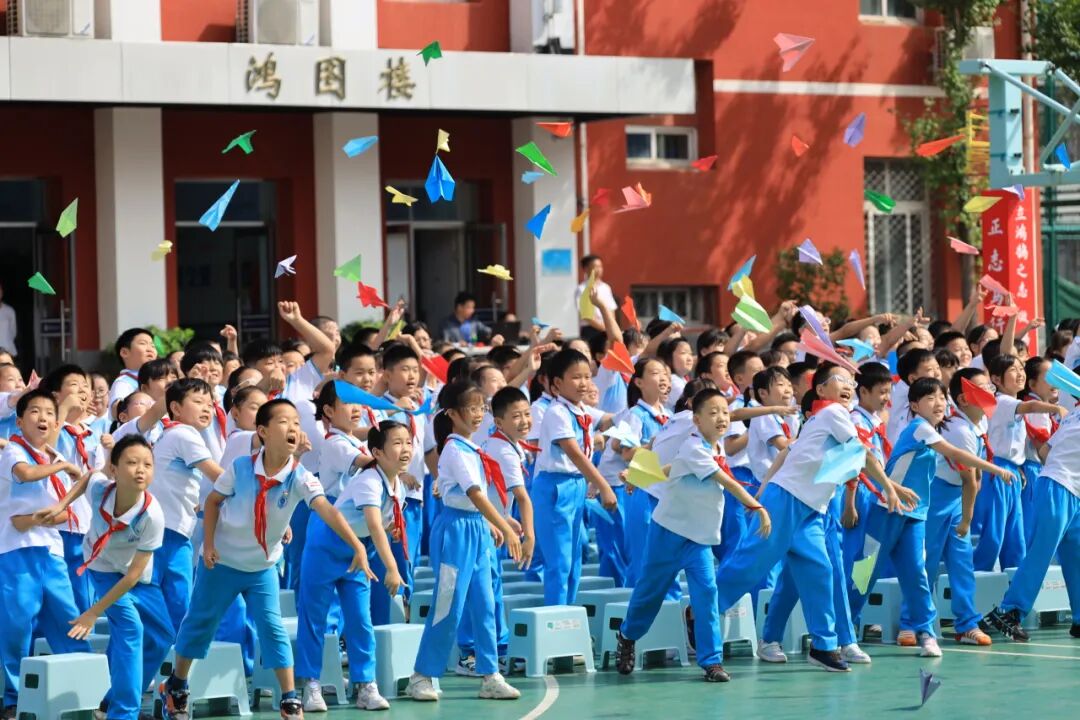 “给我蓝天我有梦,给我翅膀我是鹰!每个生命都精彩,长大要做主人翁!”在悠扬的校歌声中,同学们高举手中的纸飞机,放飞理想,乘风起航!