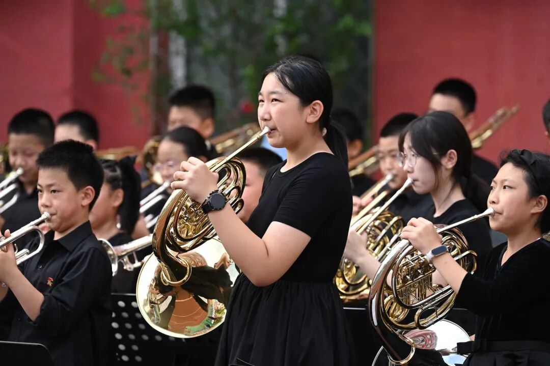 在学校古筝社团的轻拨慢捻中,《春有百花秋有月》宛转悠扬的旋律让人感叹国乐之雅! 四年级同学朗诵《蓝天下的誓言》,铿锵有力,振奋人心。全场回应“请党放心,强国有我”的誓言响彻云霄,彰显着育鸿学子们的担当与豪情,誓以鸿鹄之志,共绘强国宏图,不负韶华,不负时代,不负荣光。