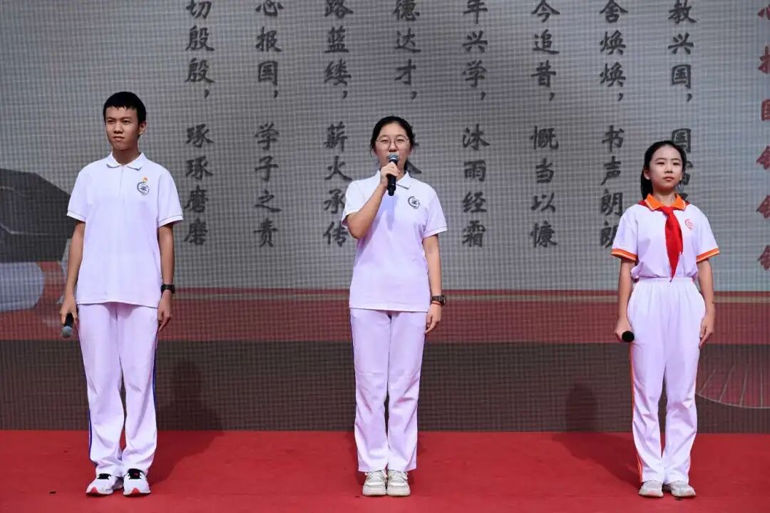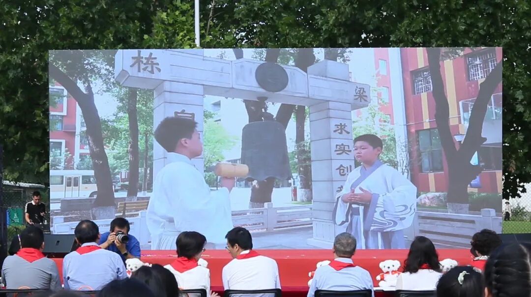 “……赤心报国、学子之责、切切殷殷、琢琢磨磨”,伴随着报国钟的悠扬钟声,成达少年们在首都师大附中校团委副书记陈子豪、校学生会主席单怡然和首师附一小少先队大队副大队长张艺馨的领诵下,齐声诵读赤心报国钟钟铭,坚定的声音汇聚成一股强大的力量,激励着同学们铭记历史、不忘初心、勇毅前行。