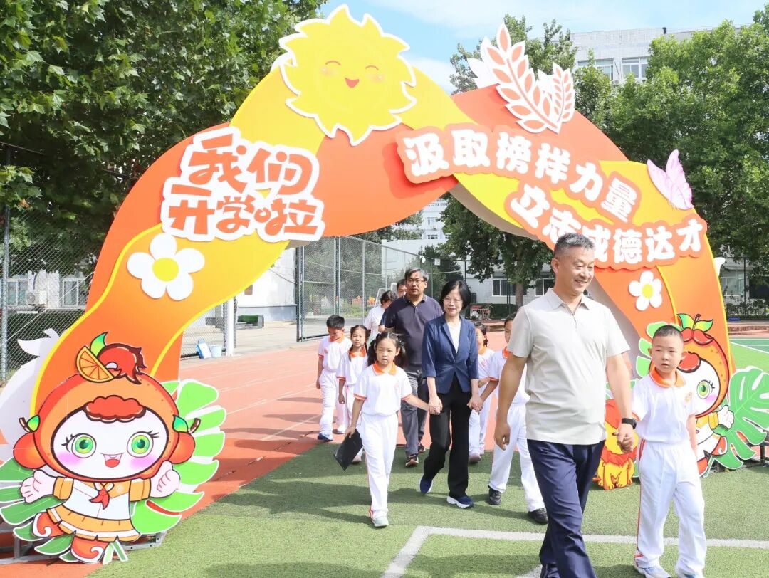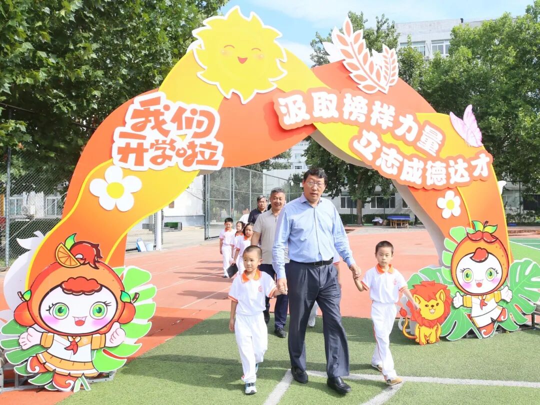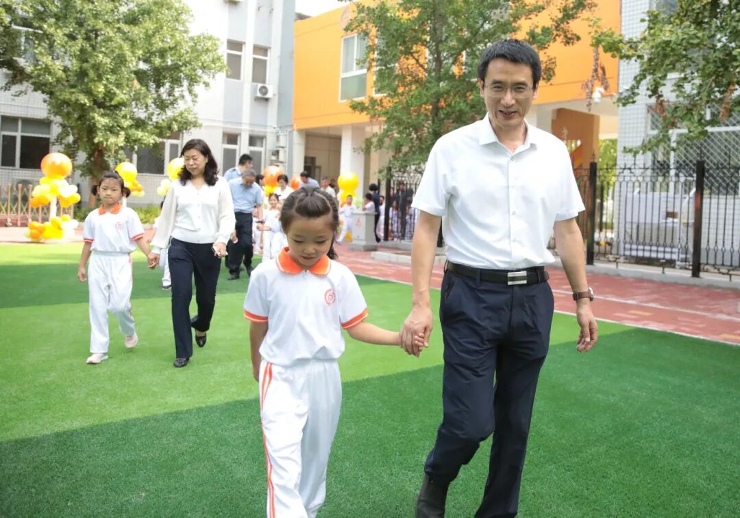 最后,我代表海淀区委教工委向所有师生及关心支持我们的人致以崇高的敬意和衷心的感谢。祝愿小朋友们在新校园中快乐学习、健康成长;祝愿老师们教师节快乐,在全国知名校长沈杰校长的带领下继续践行‘躬耕教坛,强国有我’的誓言;更期待我们首师附一小能响应教育部提出的大力弘扬教育家精神,加快强国教育建设在未来的日子里,为海淀区域社会经济发展贡献更多教育力量。