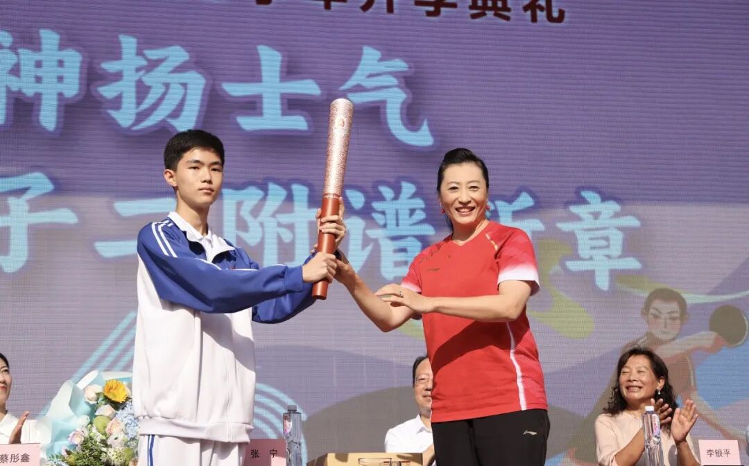 随后张宁女士将代表“更高、更快、更强、更团结”精神的奥运火炬传递至我校高三学生代表手中,祝愿毕业年级不断突破自我、顽强拼搏,在未来一年取得更加优异的成绩。