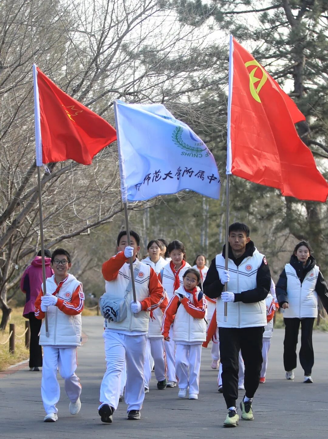 为弘扬爱国主义精神,铭记革命先烈遗志,激发首都英才赓续红色血脉的初心使命,2024年12月6日,首师附一小的24名少先队员在教工团支部团员教师的带领下,与首都师大附中高一年级的学长学姐们共同踏上了前往北京植物园樱桃沟“一二·九”纪念日的红色之路,开展以“向阳逐辉 续光启明”为主题的纪念“一二•九”爱国运动团带队活动。