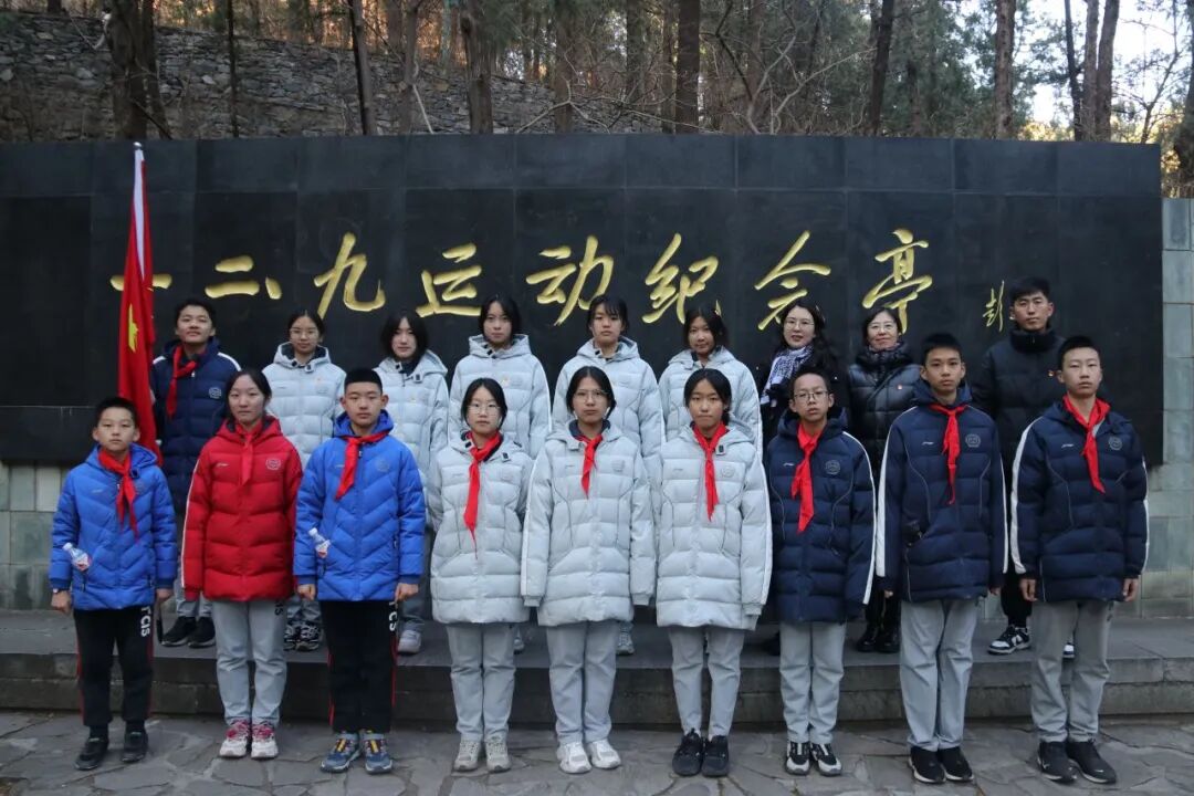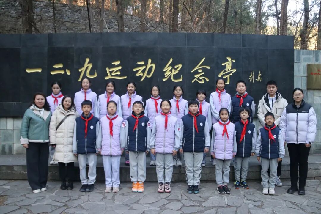 为了引导学生深入理解并继承革命传统,弘扬民族精神,牢记历史责任,同时激励学生勇于担当青春使命,增强民族自信,2024年12月9日下午,在樱桃沟一二九运动纪念地,海淀区大中小学思政教育一体化建设共同体第十二组举办了以“传承一二·九精神 赓续红色血脉”为主题的纪念活动。本次活动由中国地质大学(北京)马克思主义学院荣聪贤书记、清华附中学院路学校洪世松副校长、海淀区第三实验小学徐威副校长、北京21世纪国际学校曲琦主任带队,70余名师生代表共同前往,追溯历史足迹,传承红色基因。
