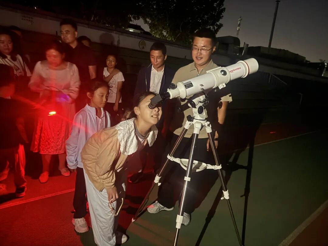 此次活动中,学校还为学生准备了天文望远镜,在专业人员的指导下,孩子们欣赏到了神秘的月球景象,了解到了更多的天文知识,他们和家长共同度过了一个难忘的天文之夜。