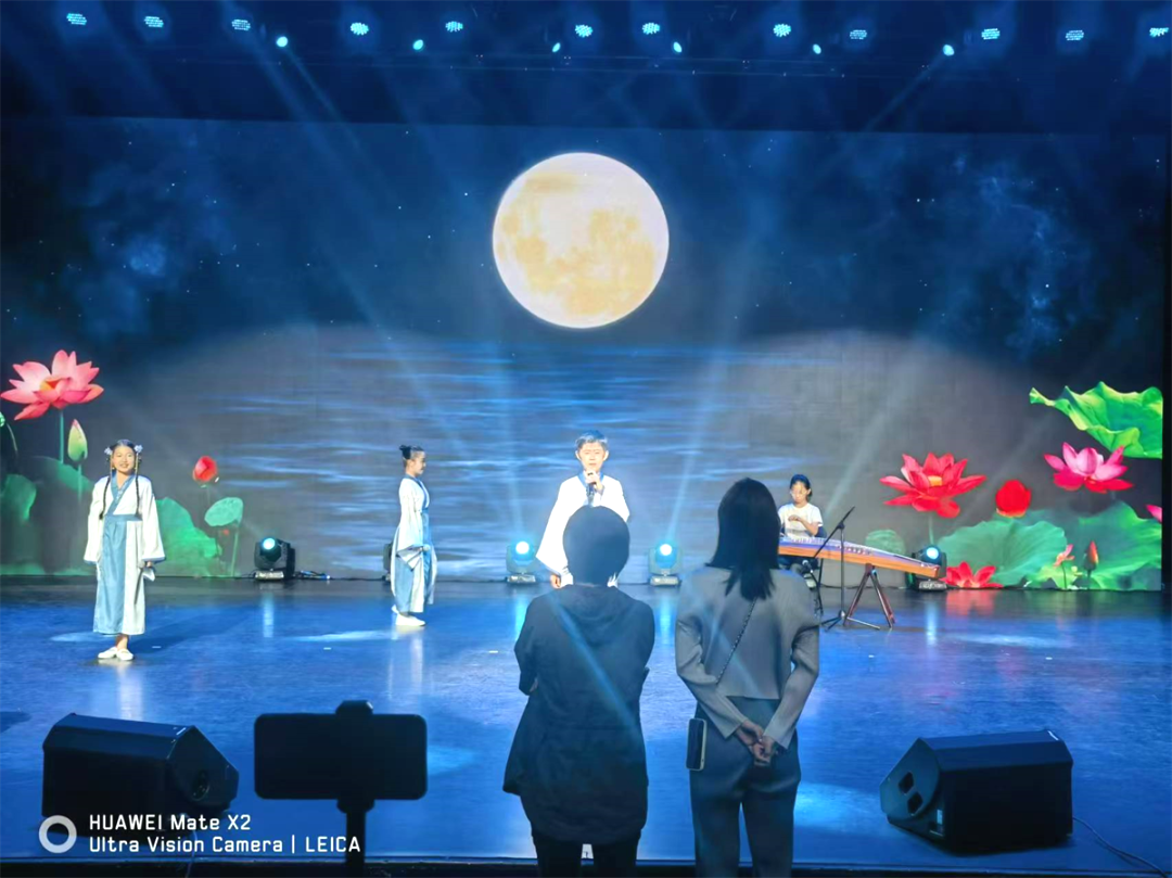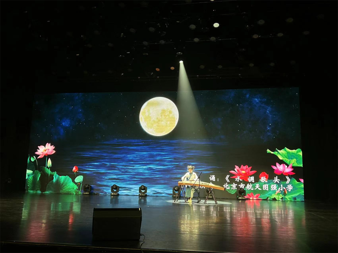 为弘扬中华民族优秀传统文化,丰富学生精神体验,2024年9月13日,航天图强小学六年级学生代表相聚中华世纪坛,将精心编排的词朗诵节目《水调歌头·明月几时有》呈现在观众面前。学生们通过诗词,传递着中华民族传统节日的深厚文化内涵和人文情感,为观众带来一场视听盛宴。