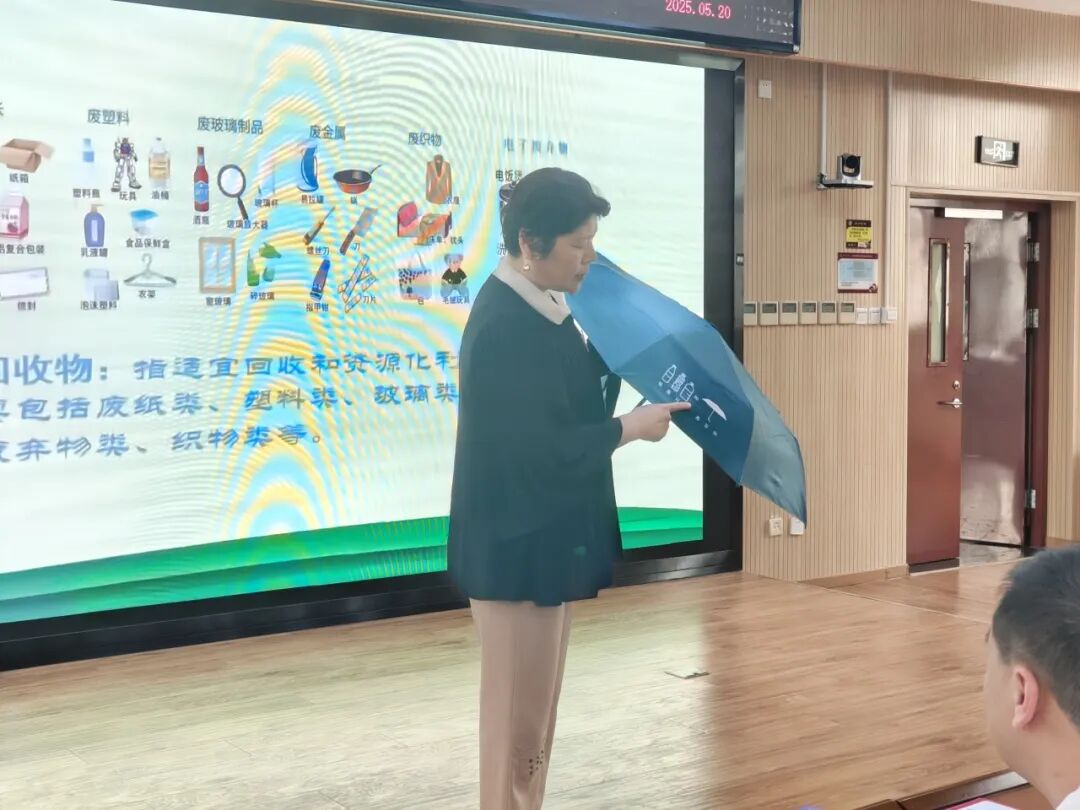 来自中华环境保护基金会环境文化教育基地的韩丽老师为首都师范大学第二附属中学的校内工作人员讲述《北京市生活垃圾管理条例》的相关知识。其中,北京市生活垃圾分为四类,每一类垃圾都有其专属的“归宿”。科学分类,不仅能让垃圾找到正确的处理方式,更能促进资源循环利用。将可回收物妥善收集,它们便能重获新生,变成新的产品;有害垃圾得到规范处理,能有效避免对环境和人体健康造成危害;其他垃圾合理处置,也能减少填埋压力。这其中,厨余垃圾的处理尤为关键。