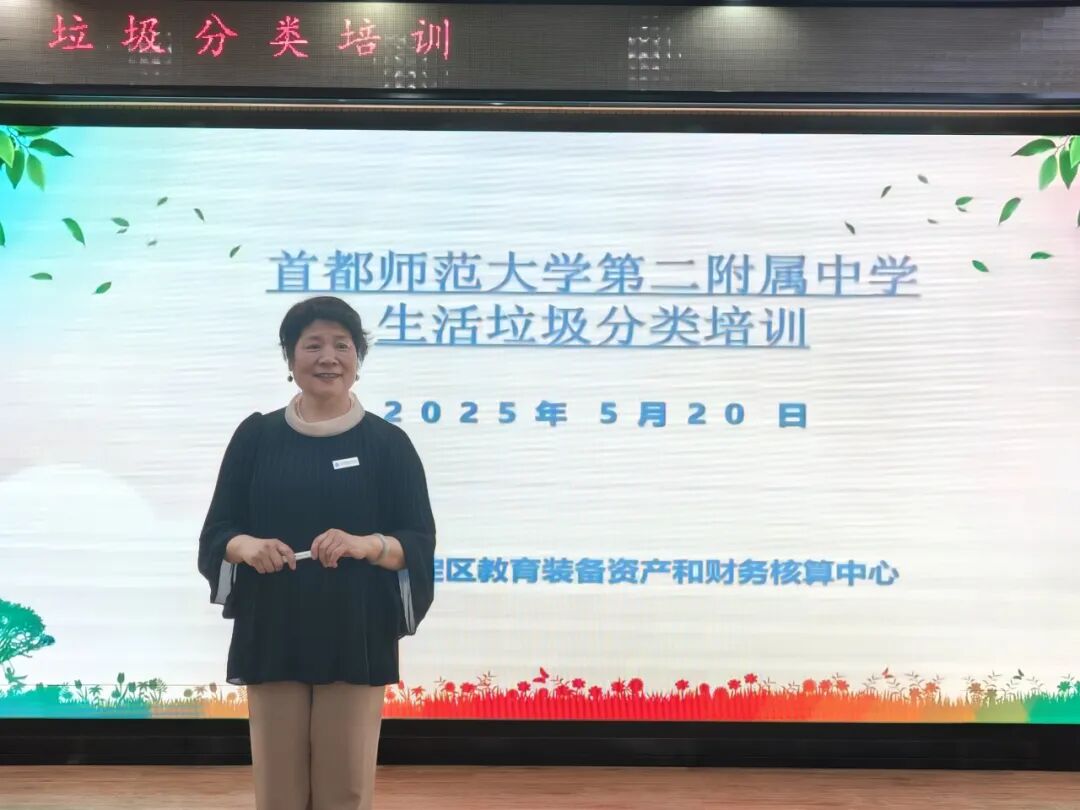 为了守护碧水蓝天的纯净底色,为了让校园成为践行绿色理念的生动课堂。2025年5月20日下午,北京市海淀区教育装备资产和财务核算中心联合中华环境保护基金会环境文化教育基地在首都师范大学第二附属中学开展垃圾分类宣传活动。