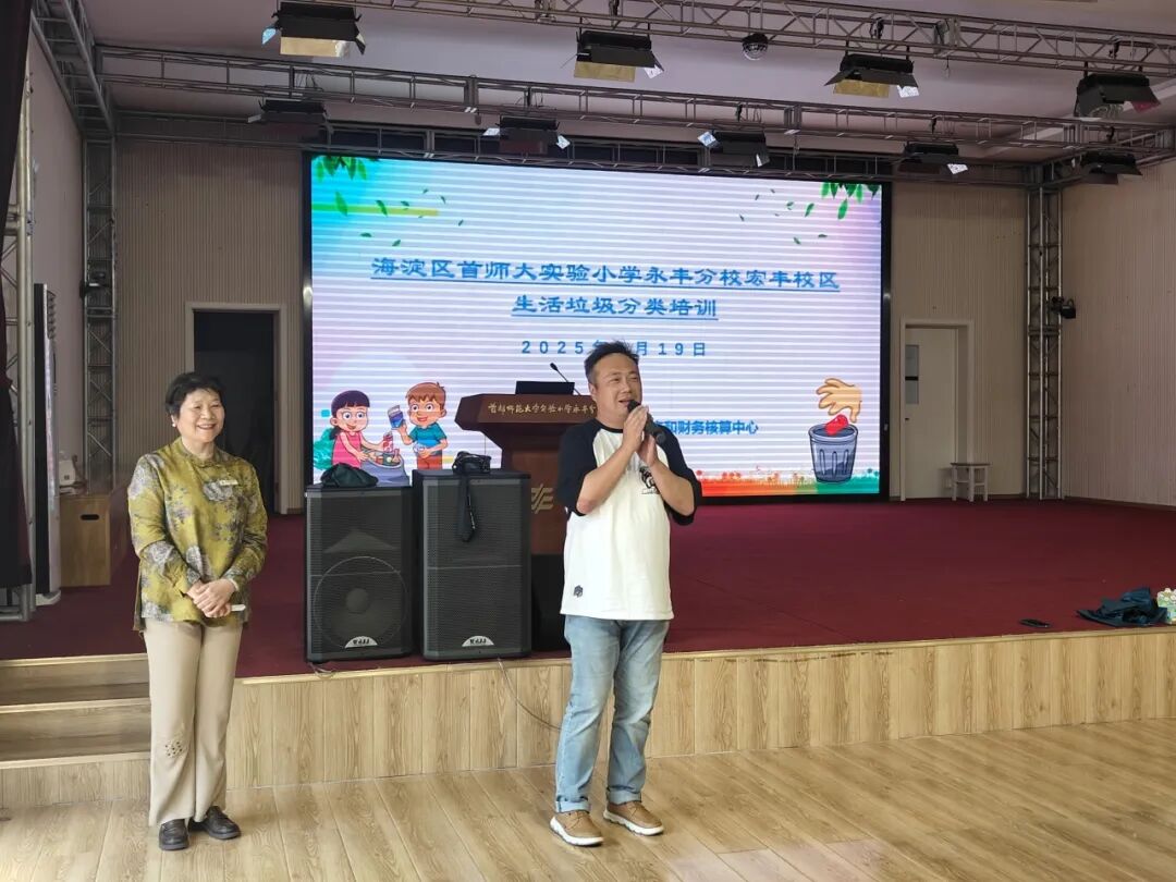 2025年5月19日下午,北京市海淀区教育装备资产和财务核算中心联合中华环境保护基金会环境文化教育基地在首都师范大学实验小学永丰分校宏丰校区开展垃圾分类宣传活动。