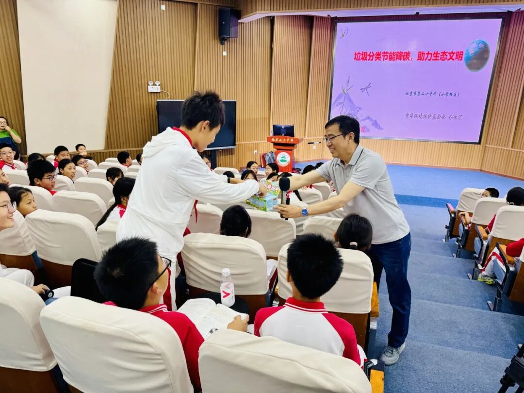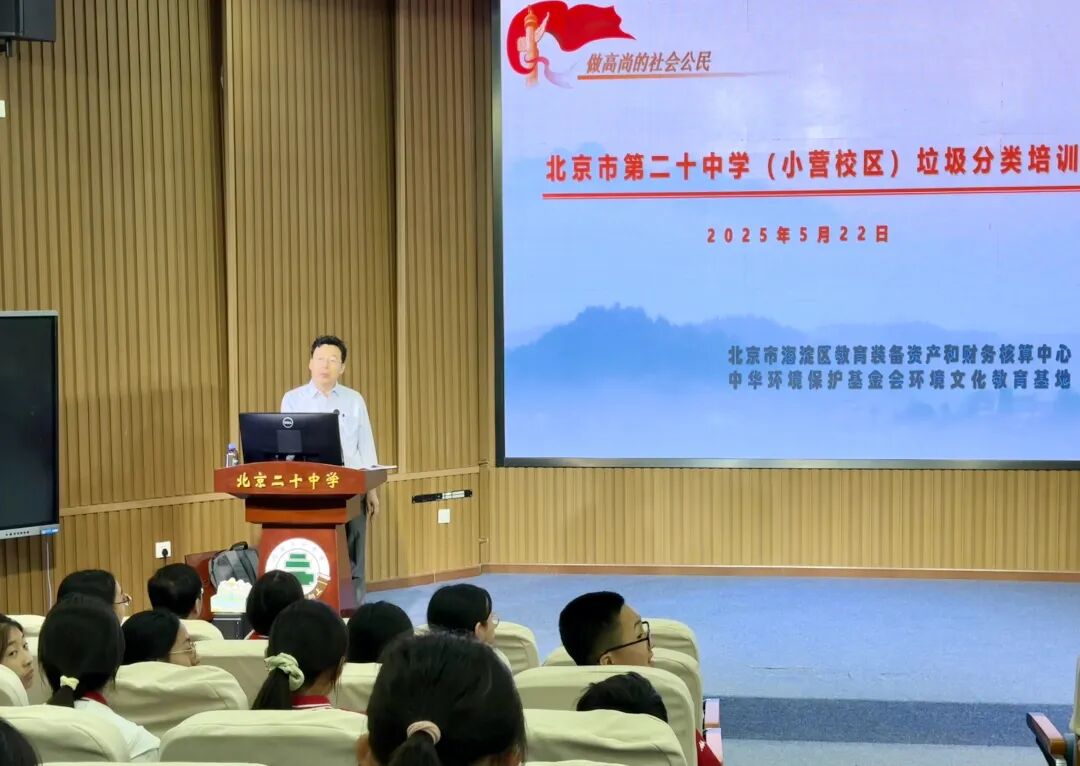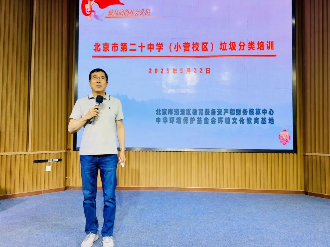 2025年5月22日下午,北京市海淀区教育装备资产和财务核算中心联合中华环境保护基金会环境文化教育基地在北京市二十中学(小营校区)开展垃圾分类宣传活动。