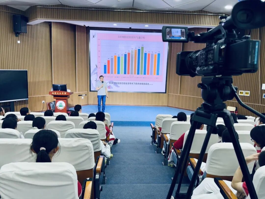 来自中华环境保护基金会环境文化教育基地的齐化军老师通过讲述《北京市生活垃圾管理条例》的相关规定,向北京市二十中学(小营校区)的同学们阐述它是如何推动垃圾处理从“被动应对”转向“主动规划”,让每个人都成为破解“垃圾围城”难题的关键力量。这种转变,不仅是处理方式的革新,更是我们对人与自然关系认知的觉醒——我们不再是自然的索取者,而是生态的守护者。