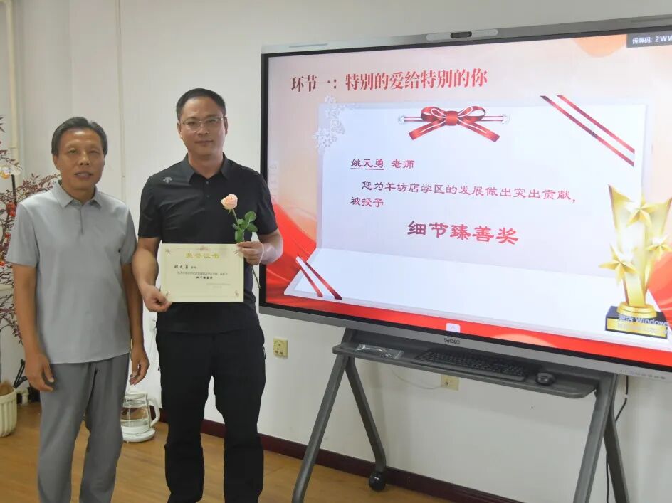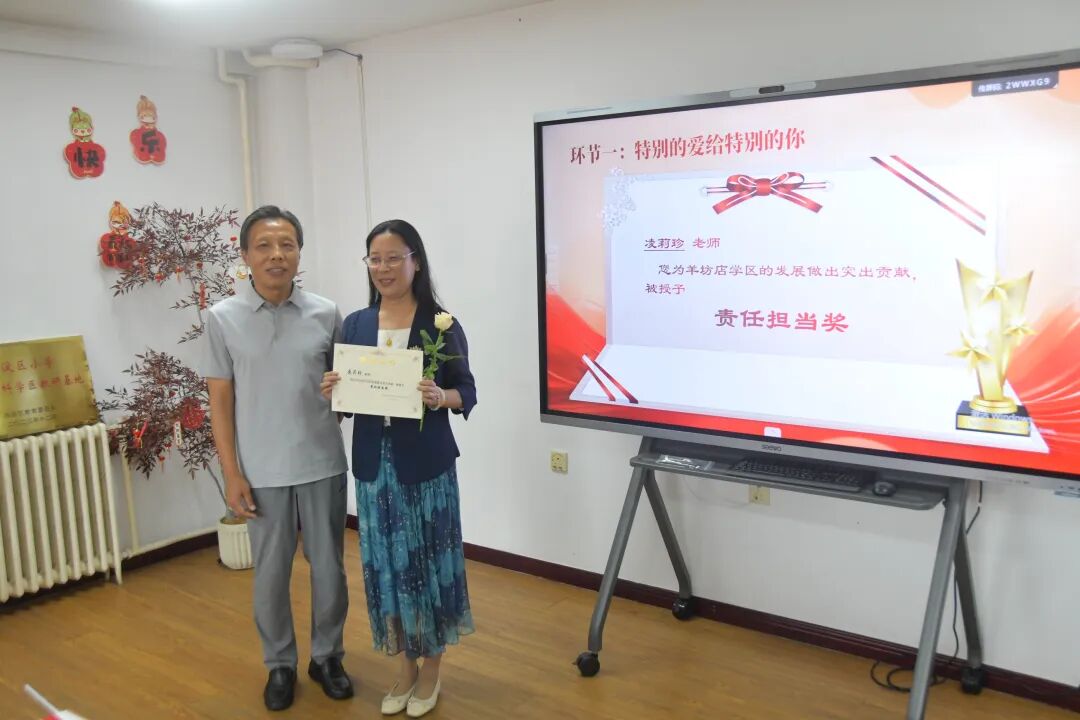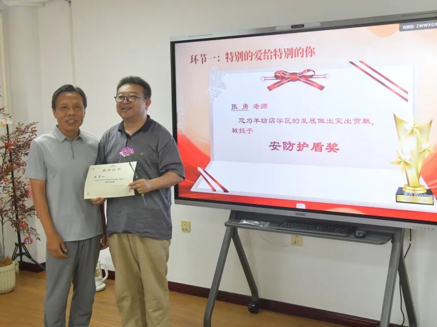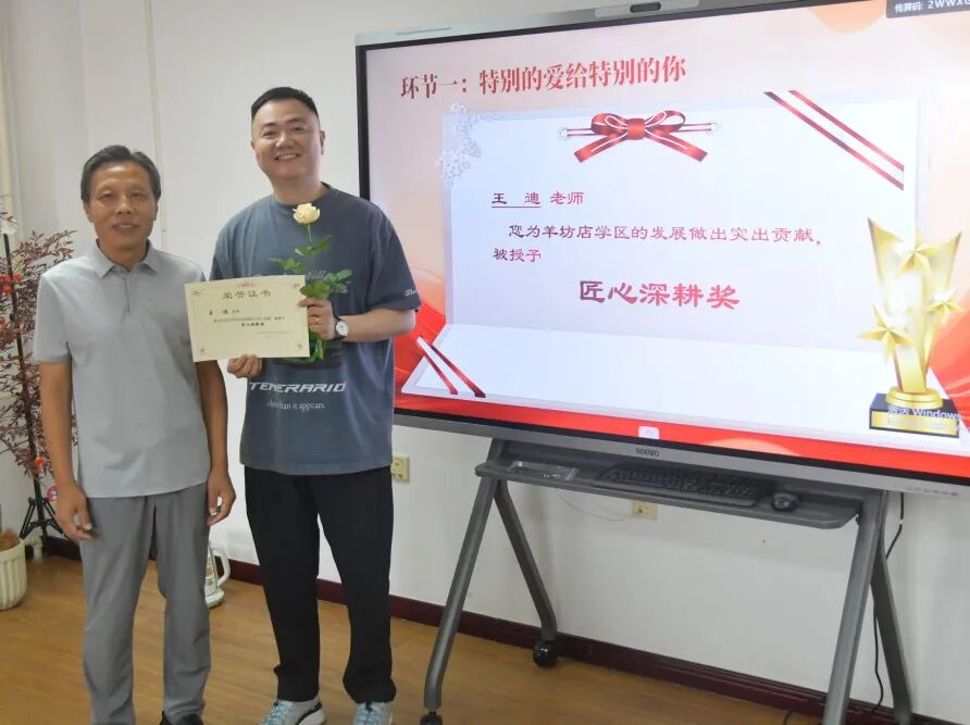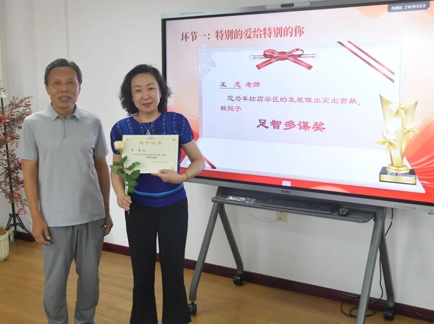 在庄重而温暖的氛围中,活动进入了“特殊贡献奖”颁奖环节。学区书记王小勇获此殊荣。