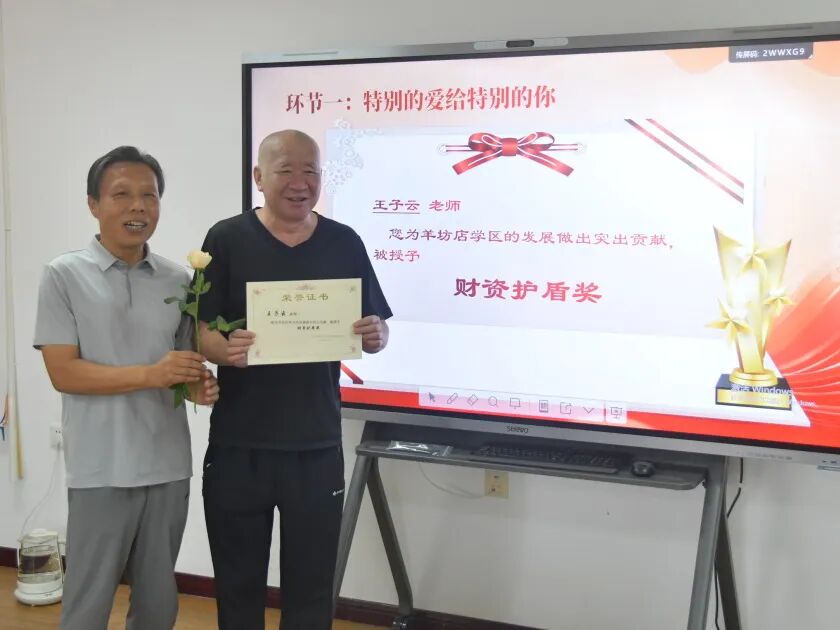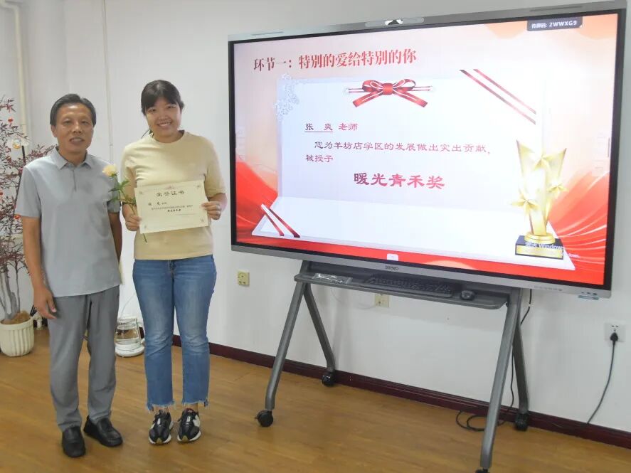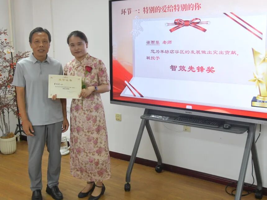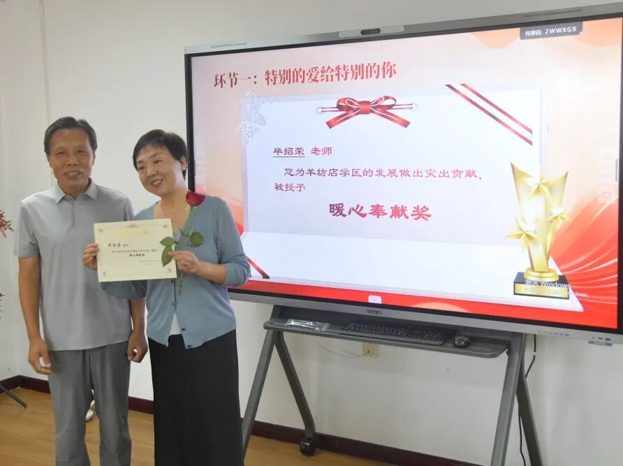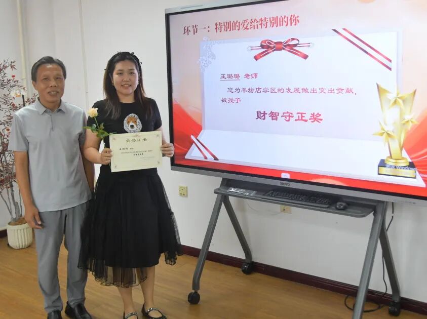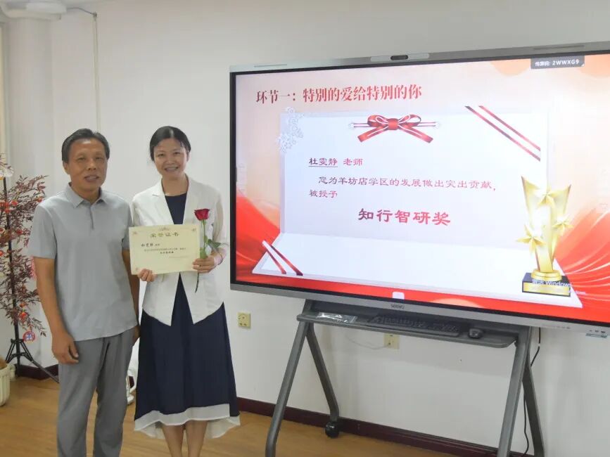 在庄重而温暖的氛围中,活动进入了“特殊贡献奖”颁奖环节。学区书记王小勇获此殊荣。
