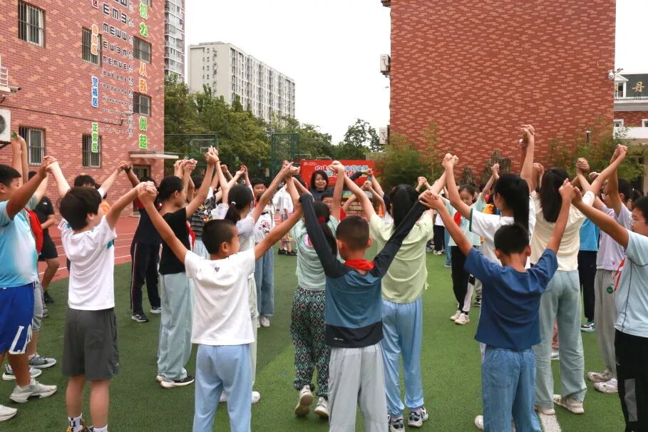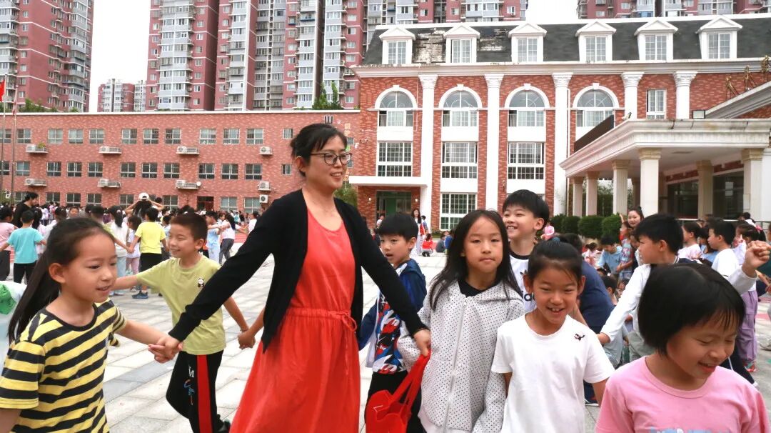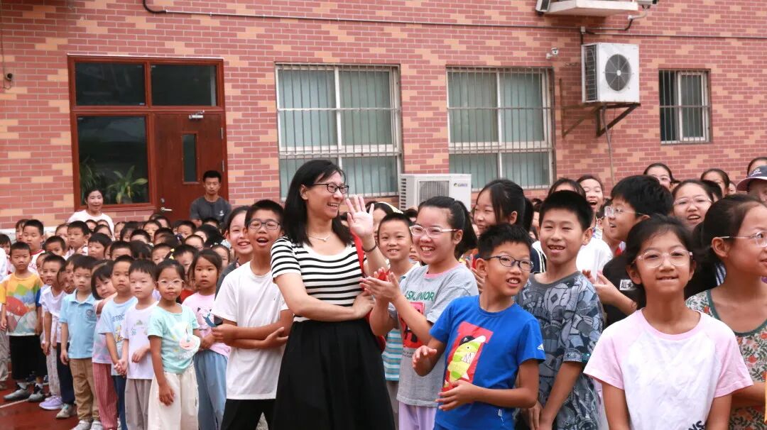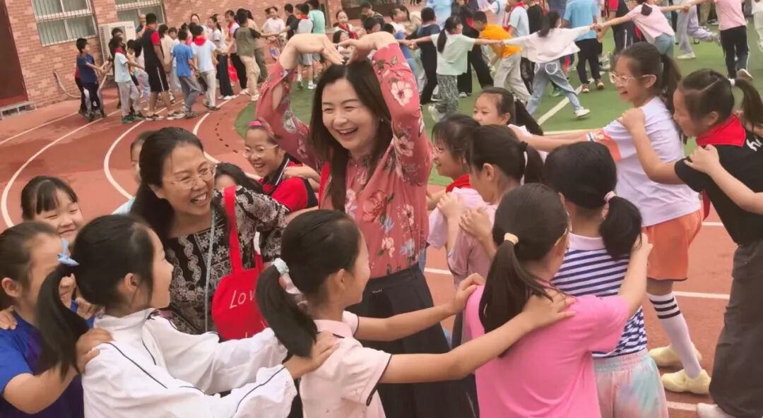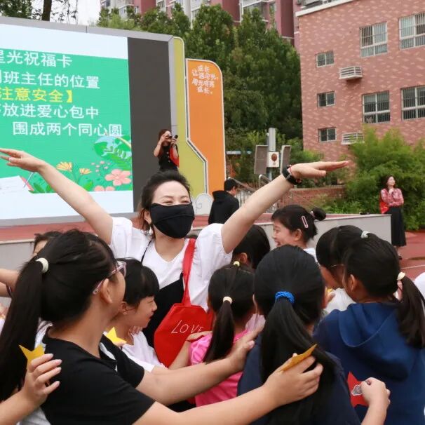 当所有老师们的“红心包”里装满了同学们送的星星祝福卡,师生们自发围成了一个个大圆圈、同心圆、螺旋圆……老师在内,孩子在外,宛如平日里每一天的课堂,却又格外不同。