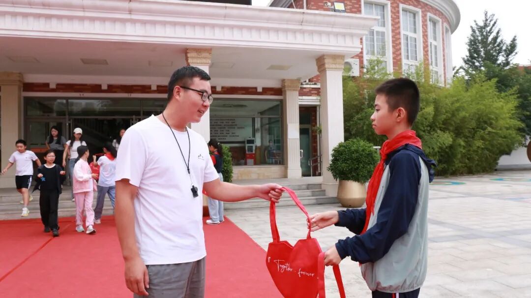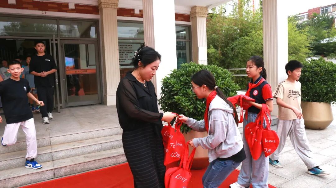 一大早,大队干部们就守在教学楼前,为每一位老师送上了特别准备的“红心包”。
