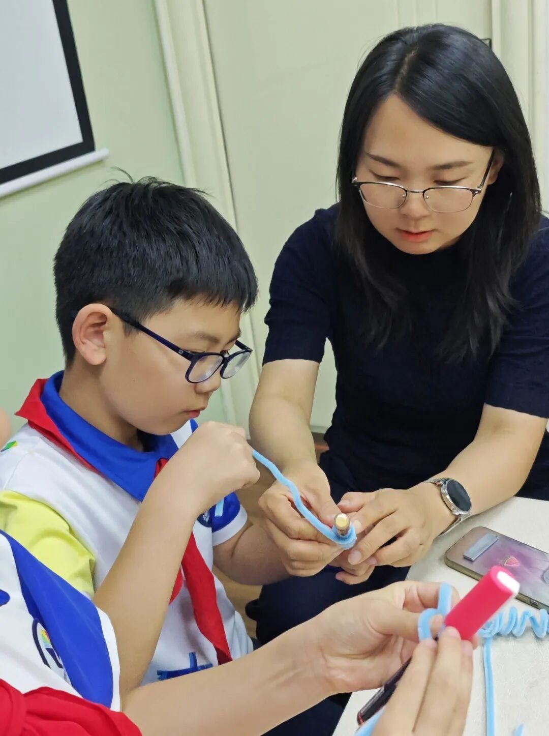 整个活动现场,气氛热烈又温馨。孩子们时而紧皱眉头,时而欢呼雀跃。每一位助教家长都极富耐心,指导的过程中不忘鼓励、称赞。班主任郑老师穿梭在孩子们中间,用相机捕捉下了一个个专注、合作的精彩瞬间。