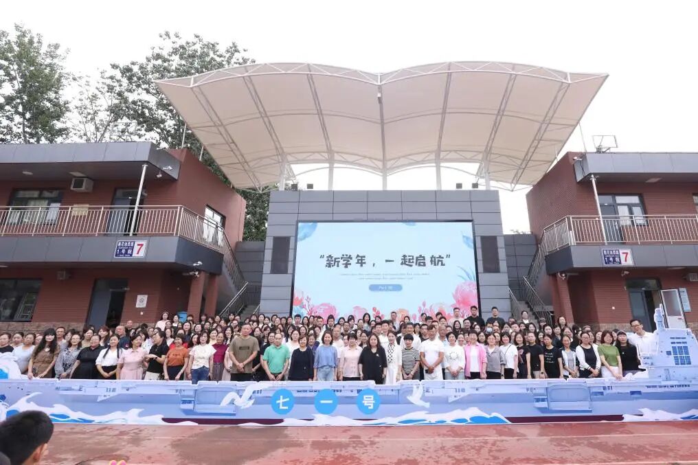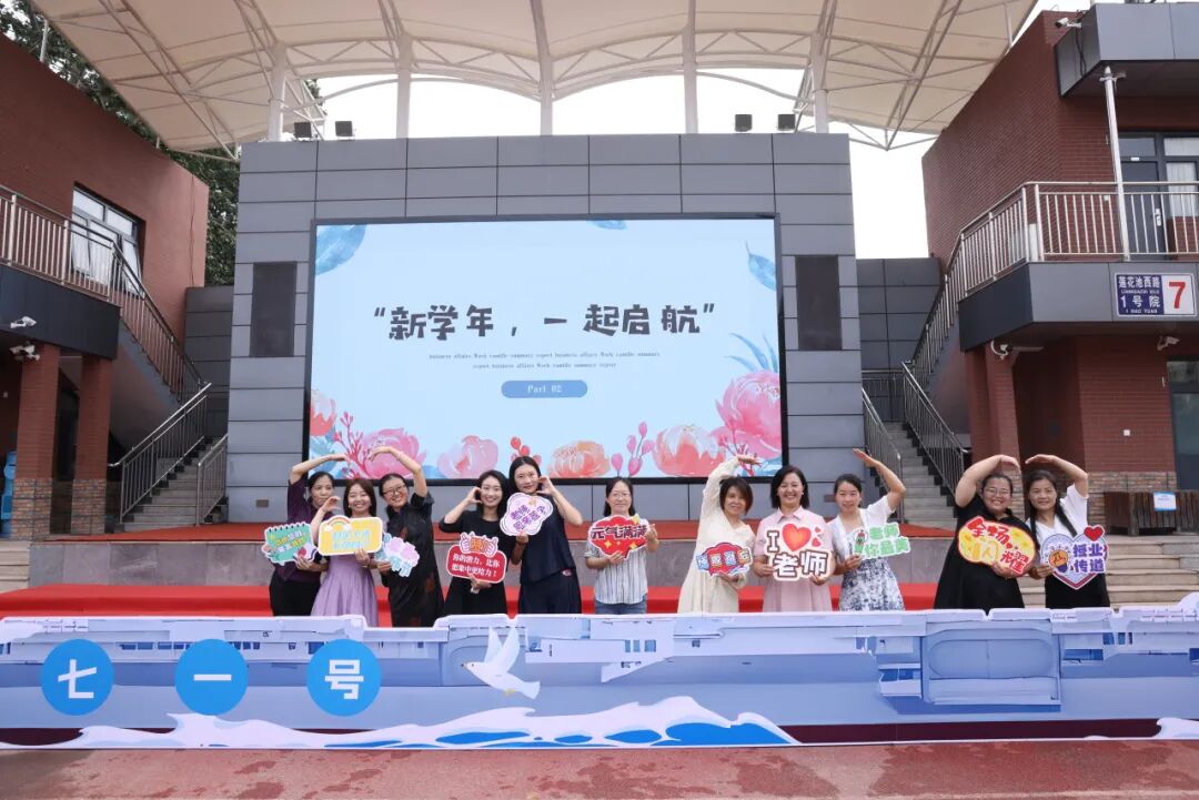 活动中,主持人将学校比喻为一艘承载希望的巨轮:书记和校长是“掌舵人”,教师是“引航员”,学生则是“未来的航海家”。这一生动比喻深刻诠释了教育的使命与担当。王艳丽书记与胡振芳校长为全体教师送上节日祝福,老师们倍感温暖与鼓舞。全体教师合影留念,记录下这充满荣誉与归属感的珍贵时刻。