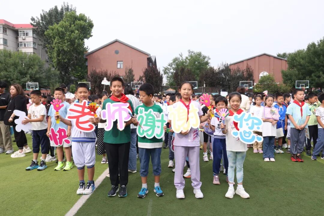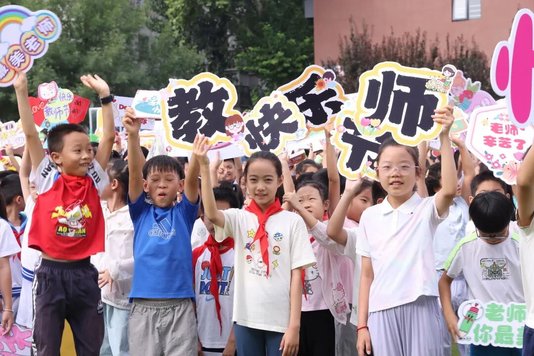 最后,学生们用充满童真的欢呼声高喊:“祝全体老师教师节快乐!老师们辛苦了!我们爱你!”真挚的祝福深深打动了每一位老师。