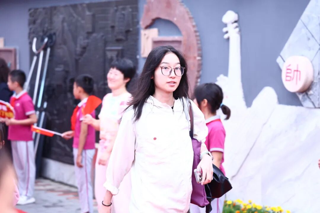 清晨,校门口处处洋溢着节日的喜悦。学生志愿者整齐列队迎接老师们的到来。最美教师相框背景板前,老师们纷纷驻足留影。