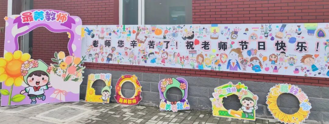一、二年级的小同学们共同绘制了一幅5米长的画卷,色彩斑斓、充满童趣,每一笔都是对老师深深的爱与感谢。画卷在校园中缓缓展开,成为节日里最动人的风景。