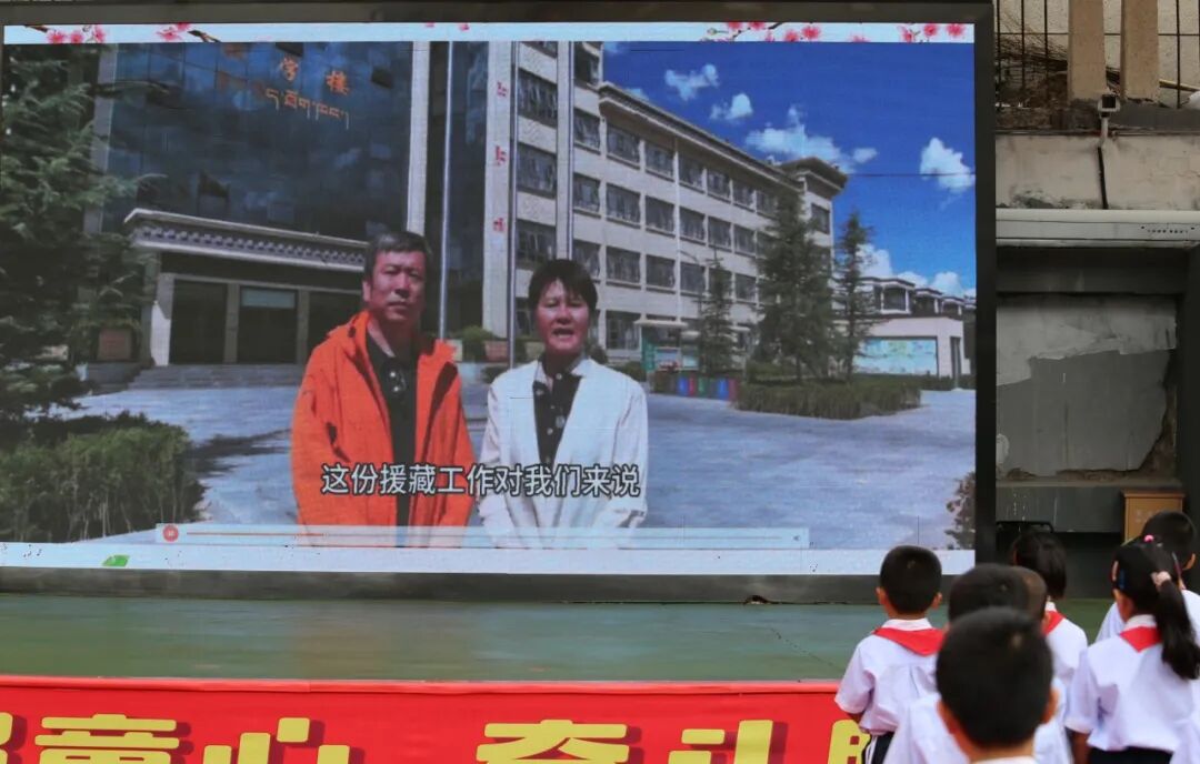 全校师生视频连线了远在西藏援教的吕艳红和许长海老师,向他们送去了节日问候,这份跨越千里的牵挂与祝福,让现场所有人为之动容。