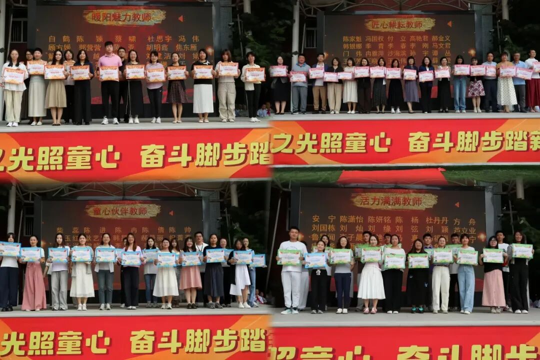 随后的表彰环节更是仪式感满满,每位老师都在今天收获了富有创意的暖心称号:“暖阳魅力教师”用笑容和耐心,温暖学生心灵,“活力满满教师”是学生心中的“能量站“,匠心耕耘教师”用极致与坚守打造每一节精品,“童心伙伴教师”是孩子们最爱的大朋友。老师们依次走上红毯,每一步都透着作为教育者的荣光。