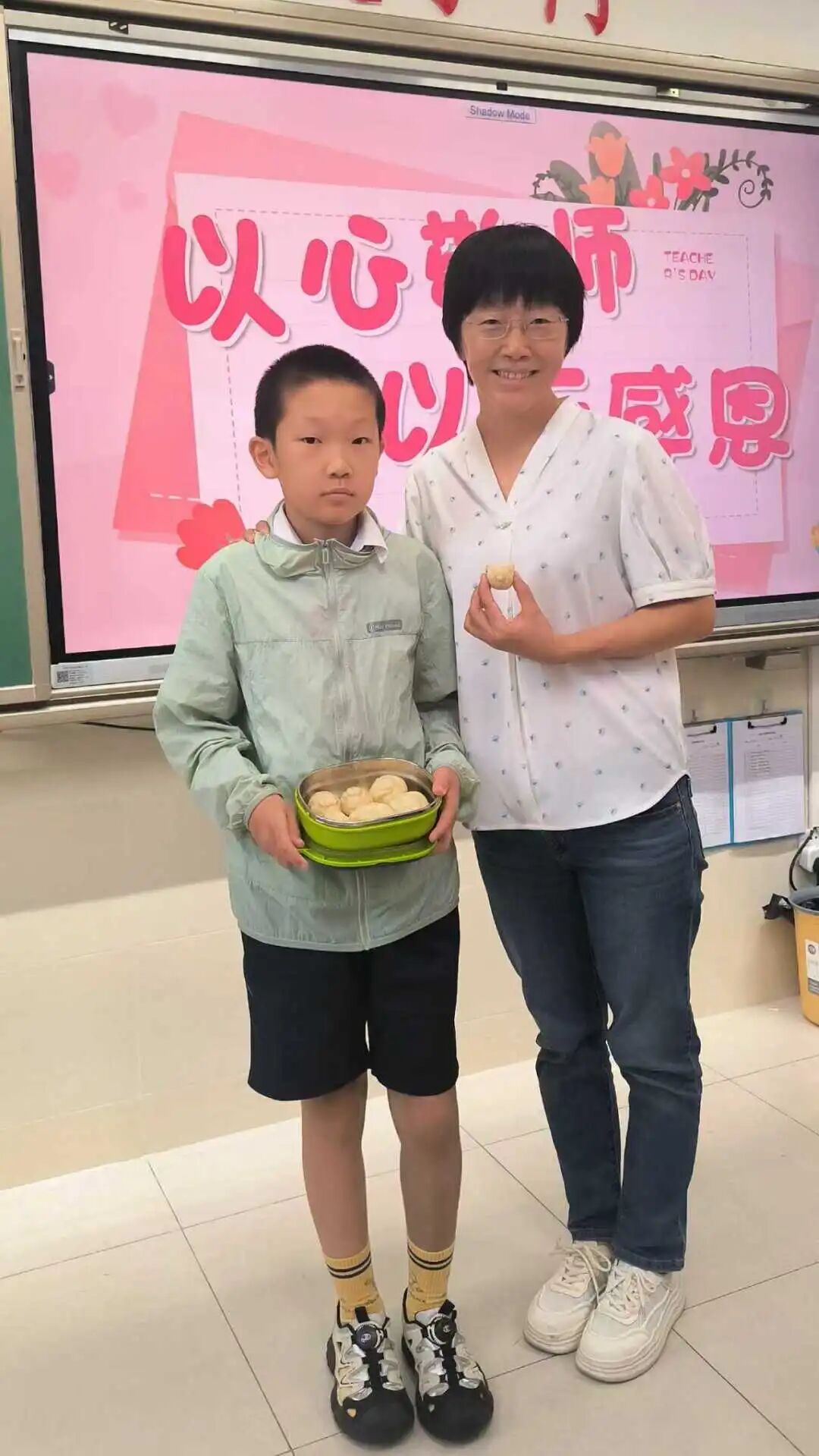 清晨,校领导们早早守候在校门口,为每一位教师送上寓意生机与健康的绿植,感谢他们日复一日的付出。学生们也手举祝福卡,表达对老师的感谢。