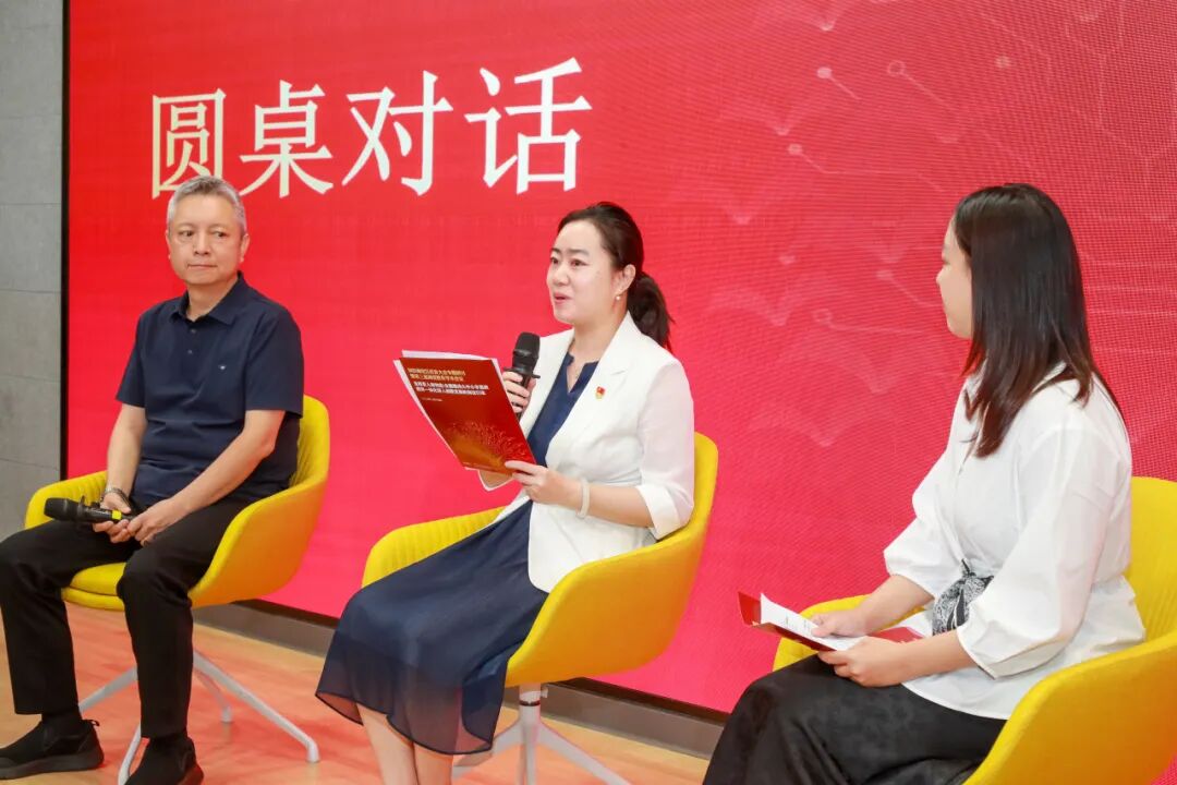 在随后的圆桌对话环节,北京科技大学马克思学院副院长安静,海淀区思政教育研究指导中心首席专家、教师进修学校思政教研室主任任兴来,首都师范大学附属中学团委书记左雅靓,香山公园爱国主义教育办公室主任王佳馨开展深度对话,共同探讨“多元合力 推动思政教育一体化建设的思考与实践”这一主题。大家结合校内外不同育人环境,进一步梳理了政策要求,厘清了“思政课一体化”“思政教育一体化”“大思政课”等概念及其关系,从课程育人、党团队教育、校内外联动等多角度分享了多元主体合力育人的海淀经验,并对海淀区思政教育一体化建设提出建设性意见,凝聚海淀共识。嘉宾一致认为,海淀思政教育一体化场效应彰显,多元共育,合力已成,应当进一步发挥引领辐射作用。海淀教师进修学校中教研主任、海淀区思政教育研究指导中心副主任赵岩担任该环节主持人。