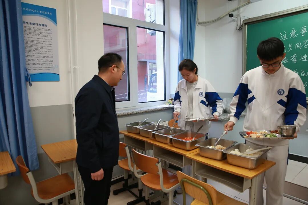 饮食卫生安全是学校整体健康安全工作中的重要组成部分,学校领导定期进行陪餐工作。开学第一天的中午时分,北航实验学校校长宋友老师、北航实验学校分校执行校长吴红老师与学生共进午餐,从分餐到回收环节进行全程考察,确保配餐工作细致到位,保证学生良好的就餐环境和营养健康水平。
