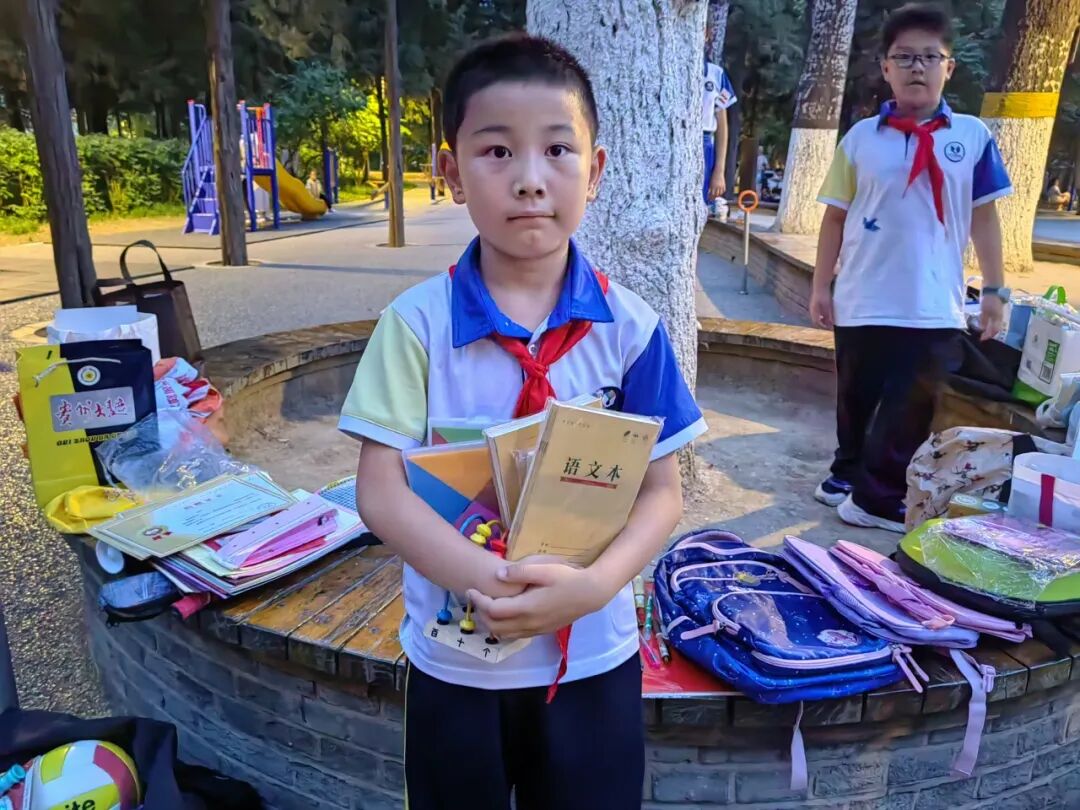 “散发光”,是温暖的接力。这次捐赠,还有来自刚刚加入中国少年先锋队的一年级的同学们。这不仅仅是一次物资的传递,更是一次深刻的爱心实践课。