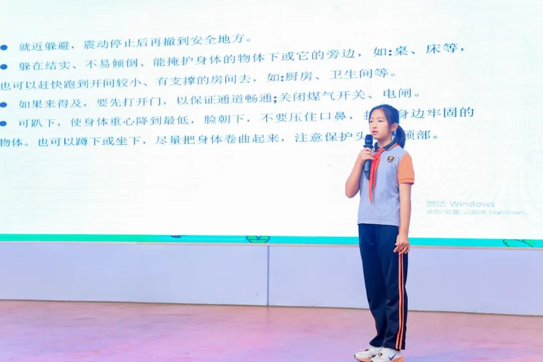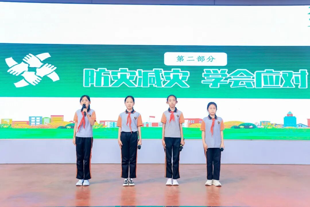 升旗仪式上,少先队员代表以《防灾减灾 你我同行》为主题进行国旗下讲话。他们结合《可怕的自然灾害,你了解多少》的科普视频,详细介绍了地震、火灾、洪水等常见自然灾害的特点与危害,并针对不同灾害类型,分享了科学实用的应对措施。他们呼吁全体同学:“灾难虽无情,但科学的预防和应对能力会为我们筑起生命的屏障。让我们积极学习防灾知识,提高自救互救能力!”
