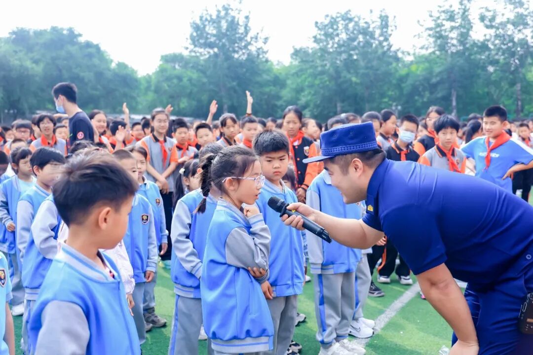 活动现场特别邀请到河北村小型消防站的消防员叔叔进行防灾自救专题宣讲。消防员们结合多年救援经验,用通俗易懂的语言和生动鲜活的案例,深入浅出地讲解了火灾、地震等灾害发生时的自救互救方法,并强调了灾后自我保护的注意事项。消防员叔叔还精心准备了防灾知识有奖问答环节。“地震时在室内应该躲在什么地方?”“发现燃气泄漏应该先做什么?”一个个贴近生活的问题引发同学们踊跃举手、争相回答。在轻松愉快的互动中,同学们进一步巩固了防灾知识,也深刻感受到消防员职业的崇高与伟大。