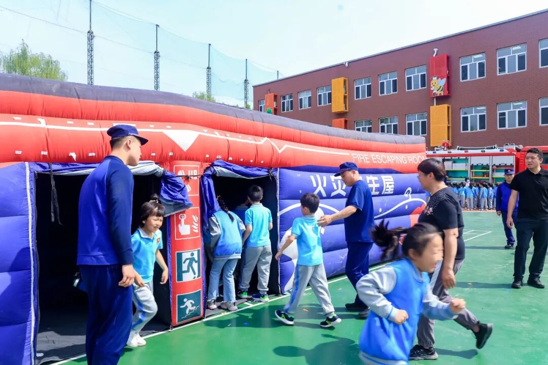 随后,一年级的小朋友们在消防员的带领下,近距离参观了消防车,直观了解消防设备的功能与使用方法。孩子们还勇敢地走进火灾逃生屋,亲身体验火灾发生时的真实场景,学习在浓烟环境下正确的逃生技巧,在沉浸式体验中增强消防安全意识与应急逃生能力。