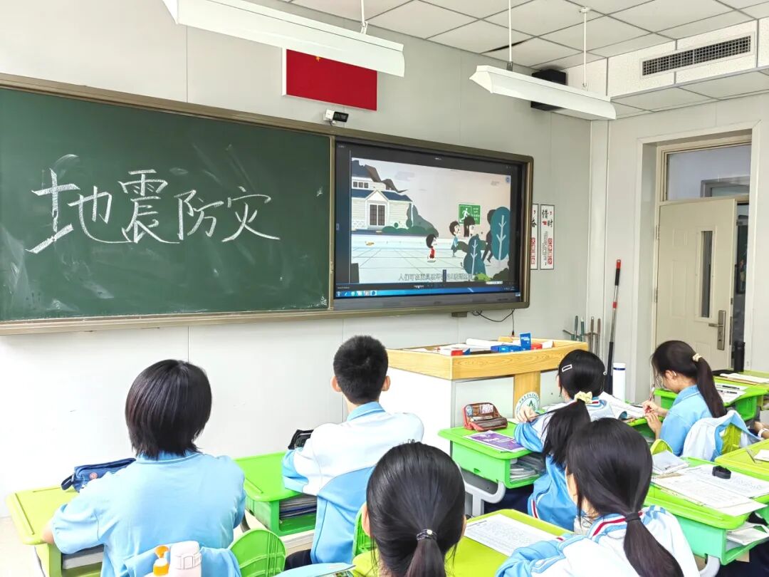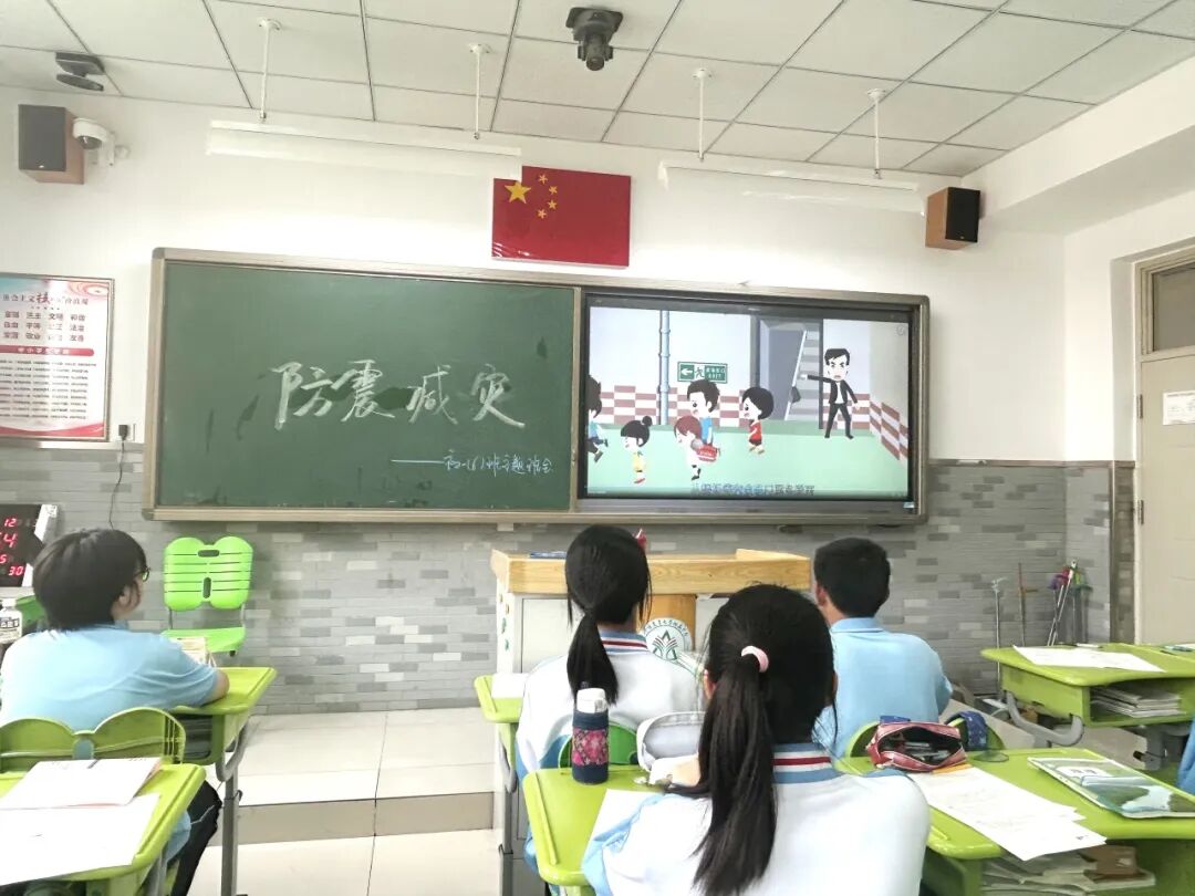 各班级利用午休时间集体观看《海淀区地震科普微课堂》视频,通过动画演示、案例解析等形式,系统学习地震预警、避难场所选择及震后自救等知识。