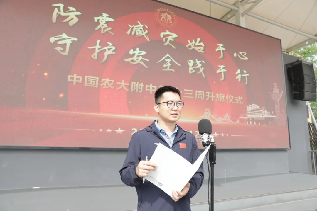 校团委书记在国旗下发表题为《防灾减灾筑防线,生命安全共守护》的讲话。他指出,防灾减灾是关乎生命的大事,需要每个人从思想到行动的全面参与,并号召全体师生做到“三要”:一要树牢安全意识,主动学习防灾知识;二要掌握避险技能,定期参与应急演练;三要传播安全理念,争做校园安全宣传员。