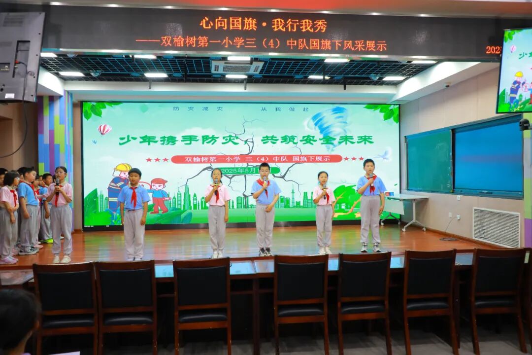 2025年5月12日,正值“全国防灾减灾日”,双榆树一小三(4)中队全体学生以“少年携手防灾,共筑安全未来”为主题,凝聚防灾减灾安全教育,将教育与表演相结合,特别举行了一场兼具教育性与感染力的国旗下展示活动。