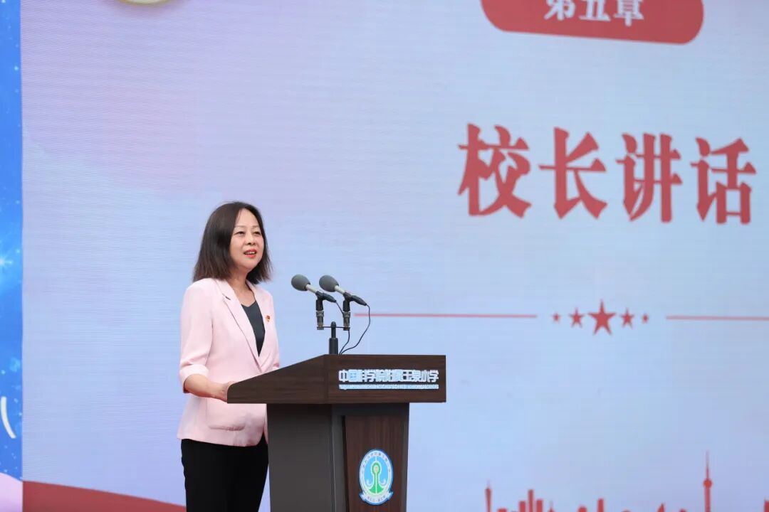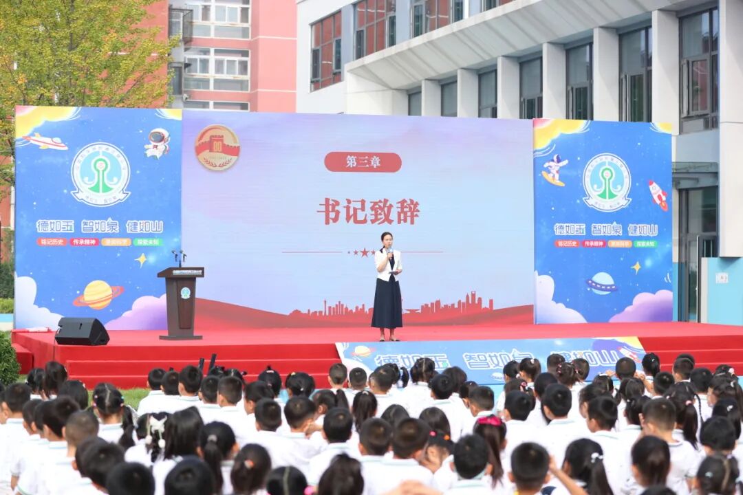 “孩子们,昨天的抗战胜利80周年阅兵,你们是不是和我一样热血沸腾?”王红艳书记的致辞一开口就拉近距离,她以阅兵盛况为引,讲述革命先辈的奉献,更带来“少年钱学森”“少年袁隆平”的榜样故事。
