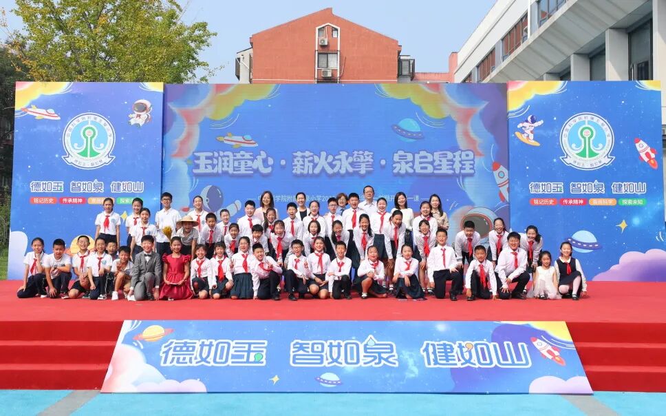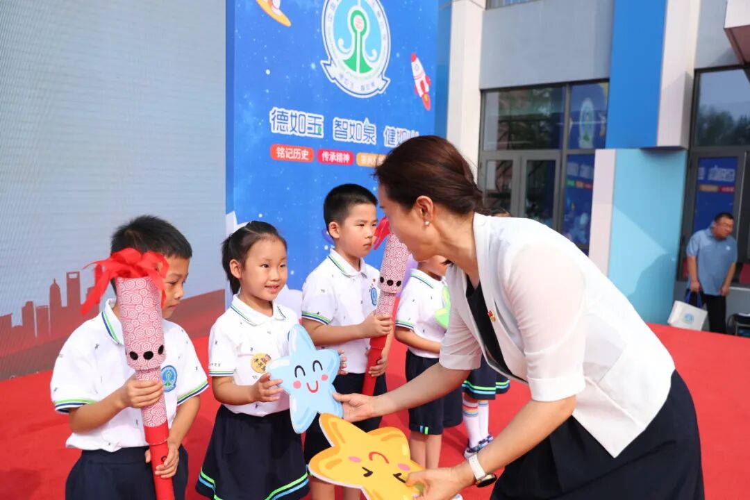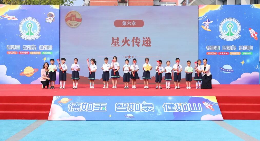 随后王书记和梁校长把先辈传给我们的“红色火种”及象征着航天精神的星火传递给一年级的学生代表,希望玉泉学子“薪火永擎 泉启星程",引得全场欢呼雀跃。