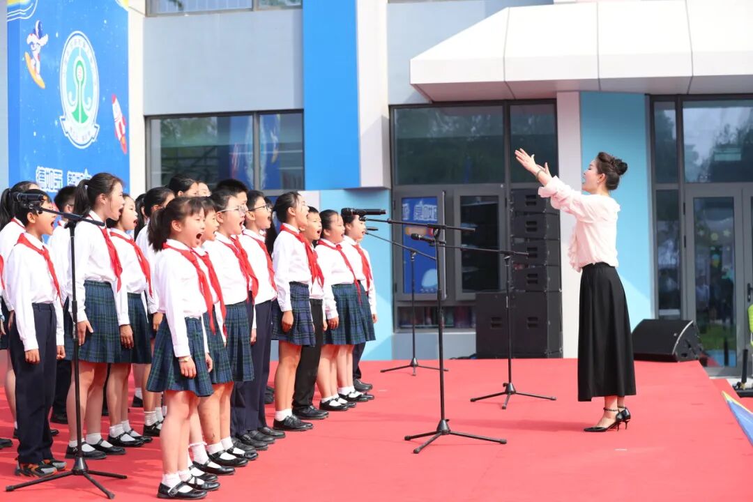 “我们是共产主义接班人,继承革命先辈的光荣传统……”在郭青老师的带领下,合唱团领唱,全体师生起立齐唱。嘹亮的歌声穿透校园,唱出了新时代少年的朝气与担当。