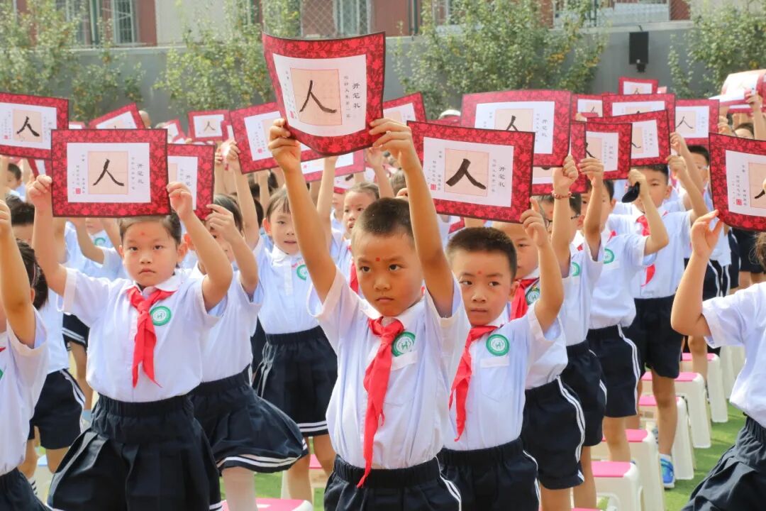 仪式上,李春校长与学生代表一起写下一撇一捺,完成“人”字,“这两笔相互支撑,才站得稳,就像我们做人,要正直,更要懂得担当。”