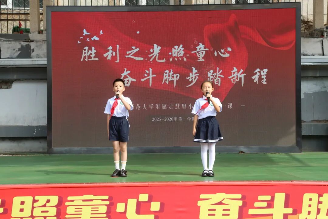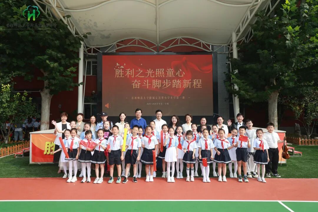 九月的校园,红旗招展,生机盎然。首都师范大学附属定慧里小学以“胜利之光照童心,奋斗脚步踏新程”为主题,拉开了2025-2026学年度第一学期开学第一课的序幕。从入校时的沉浸式红色体验,到庄严的仪式,再到充满力量的班会课,同学们在红色精神的滋养与成长力量的感召中,迈出了新学期的坚定步伐。