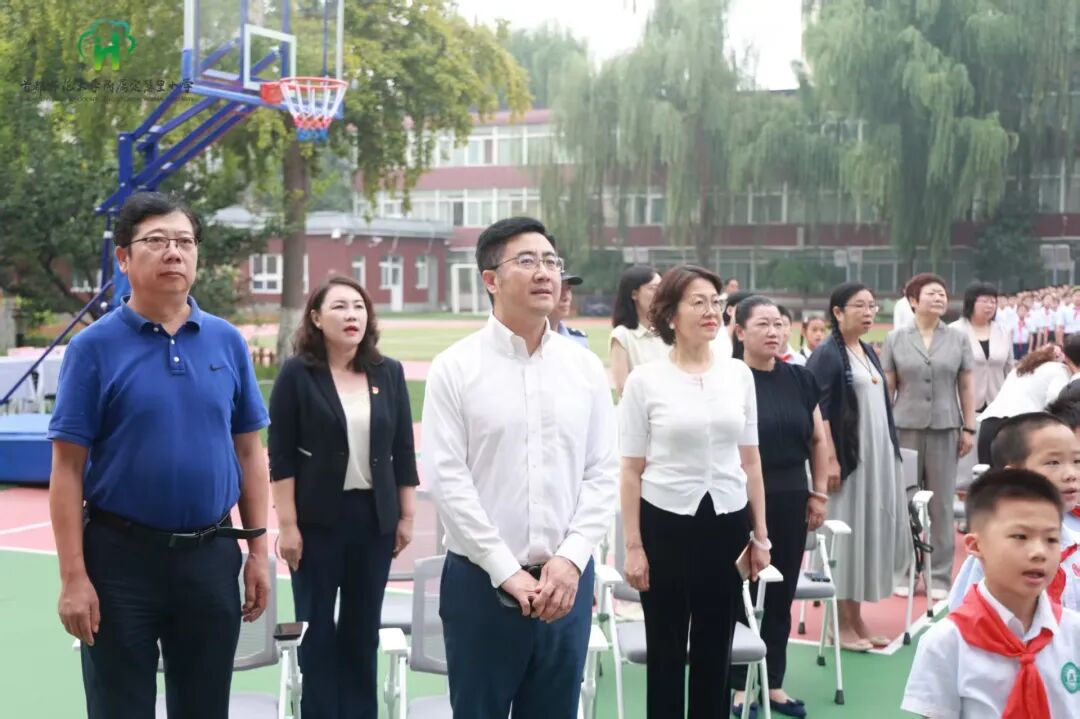 来自八里庄街道、首都师范大学、八里庄学区、恩济庄派出所、定慧西里社区等友邻单位的的叔叔阿姨们和家长代表们,与同学们共同迎接新学期的到来。