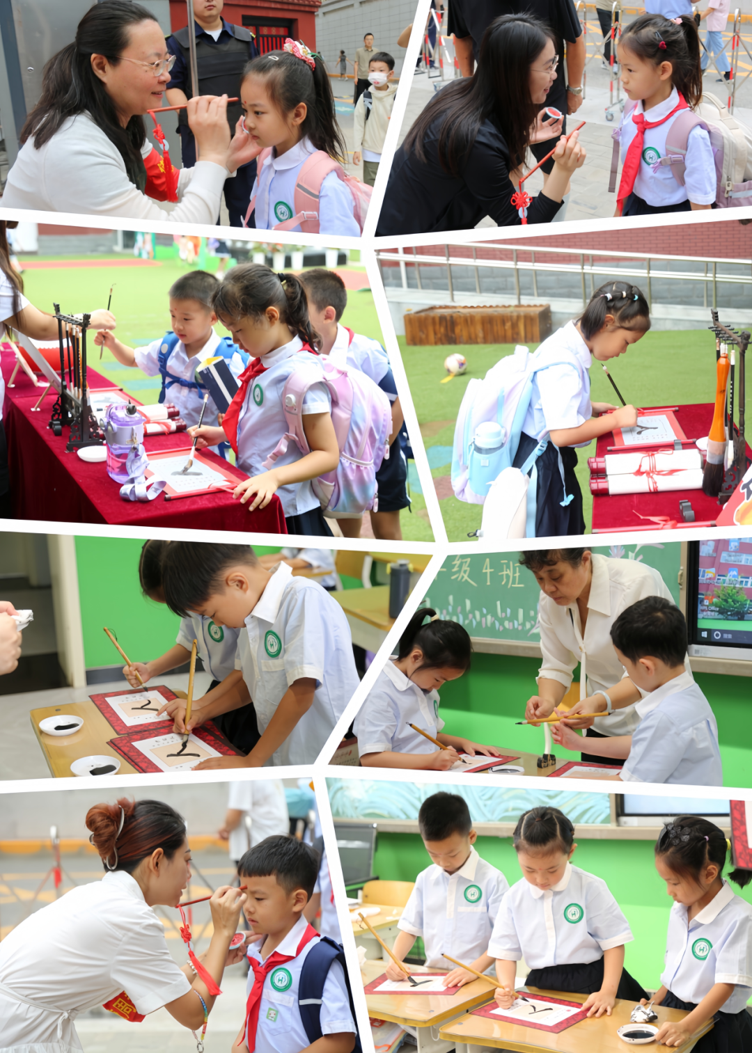 东校区的特色活动同样精彩纷呈。慧小娃们满怀期待地穿过“启智门、知礼门、文枢门”,在纳福集瑞流沙瓶打卡处留下专属印记;蹴鞠场上,大家瞄准“状元门”奋力射门,投壶游戏里屏息凝神投掷箭矢,沉浸式感受传统游戏的乐趣;伴随着清脆的鼓声,“击鼓明智”开启智慧启迪,老师轻点朱砂为孩子们送上启蒙祝福。这些充满仪式感与趣味性的活动,不仅让孩子们体悟传统文化魅力,更在心中播下爱党爱国的种子,让红色基因在启蒙之旅中悄然扎根。