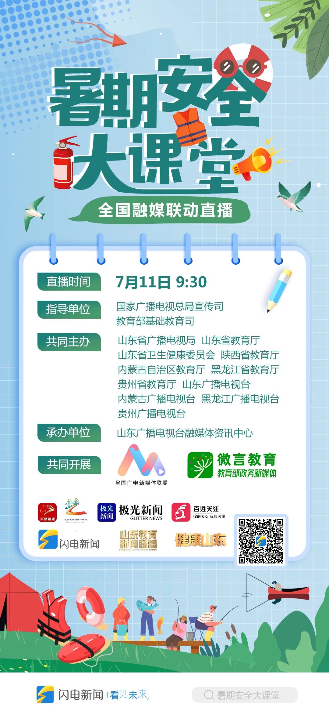 暑期如约而至,当孩子们在享受欢乐时光的同时,潜藏的安全隐患也悄然出现。如何让孩子过一个安全、快乐的暑假?家长们又该掌握哪些守护技巧?由教育部基础教育司、国家广播电视总局宣传司共同指导的《暑期安全大课堂》全国融媒联动直播将正式开播。关注微言教育微信,7月11日9:30,在微言教育微信视频号、微博观看直播。
