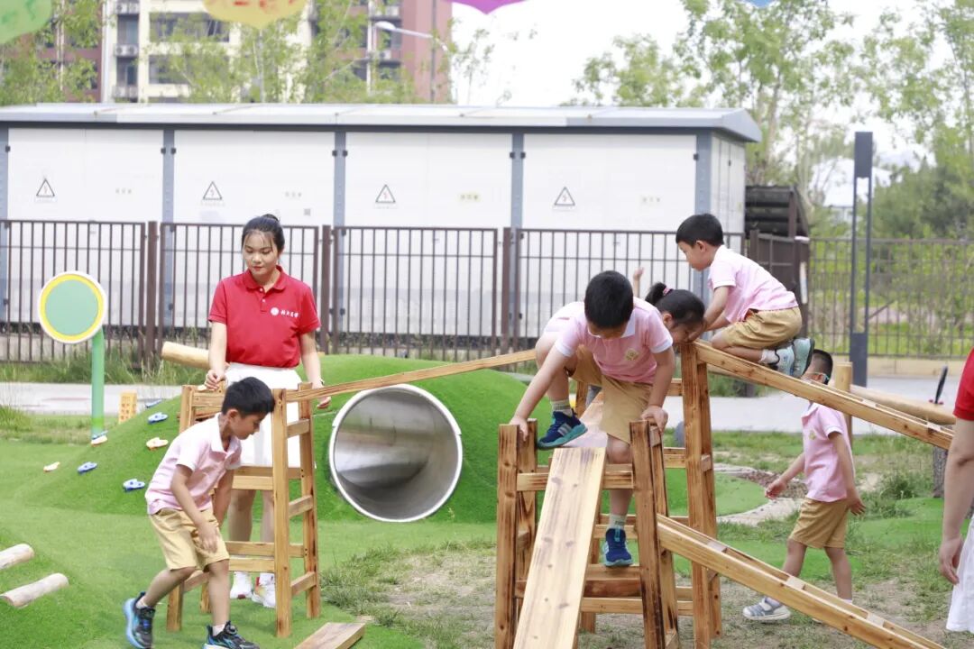 户外自主游戏中,孩子们自由选择搭建、扮演等游戏,欢乐互动。手球场上,小运动员们身手矫健,赢得阵阵掌声。