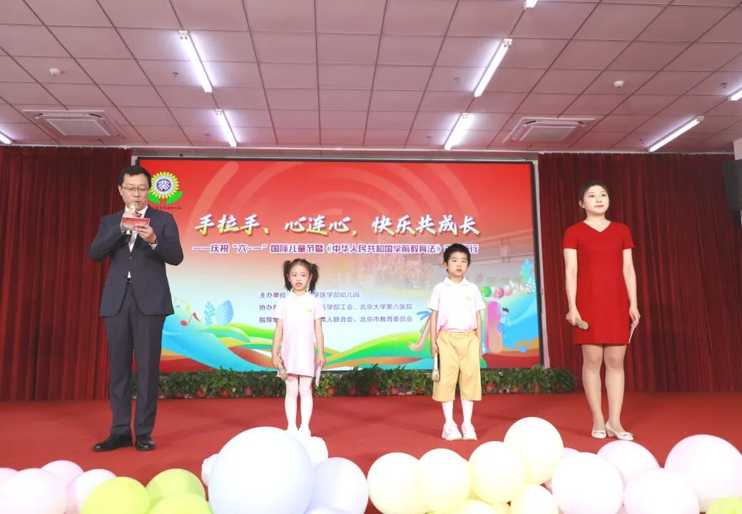 为庆祝“六一”国际儿童节,并迎接《中华人民共和国学前教育法》正式施行,北京大学医学部幼儿园于2025年5月30日上午举办“手拉手、心连心,快乐共成长”主题活动。